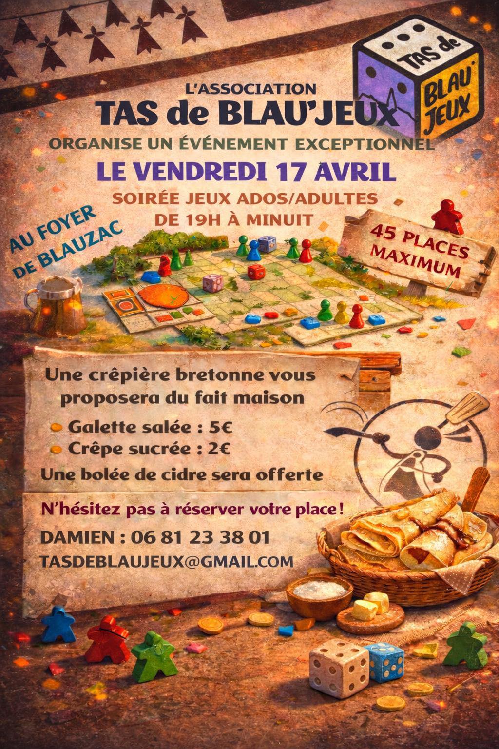 L’association Tas de Blau’jeux vous invite à découvrir le monde des jeux de société ! Au programme, jeux coopératifs, jeux de dés, de plateaux, des cartes… Tout public. Ouvert aux ado-adultes curieux ou passionnés dès 19h !
