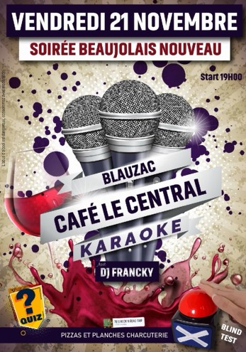 Le café Le Central vous propose une soirée festive et conviviale pour fêter la sortie du Beaujolais nouveau. Pizzas et planches charcuterie pour vous restaurer et DJ Francky pour animer la soirée ! Venez nombreux !