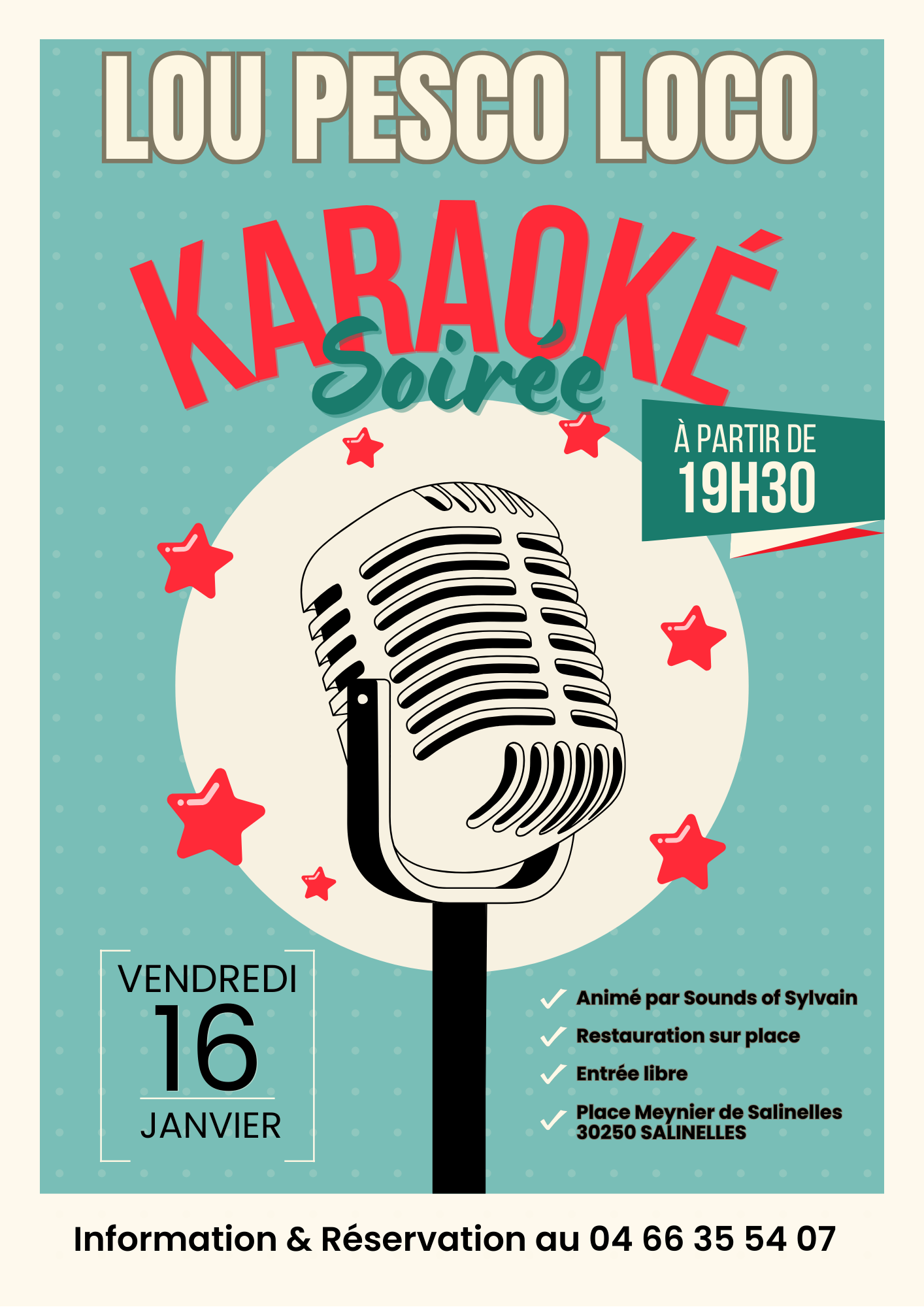 Soirée karaoké animée par Sounds of Sylvain. Restauration sur place, réservation vivement conseillée !Soirée karaoké animée par Sounds of Sylvain. Restauration sur place, réservation vivement conseillée !