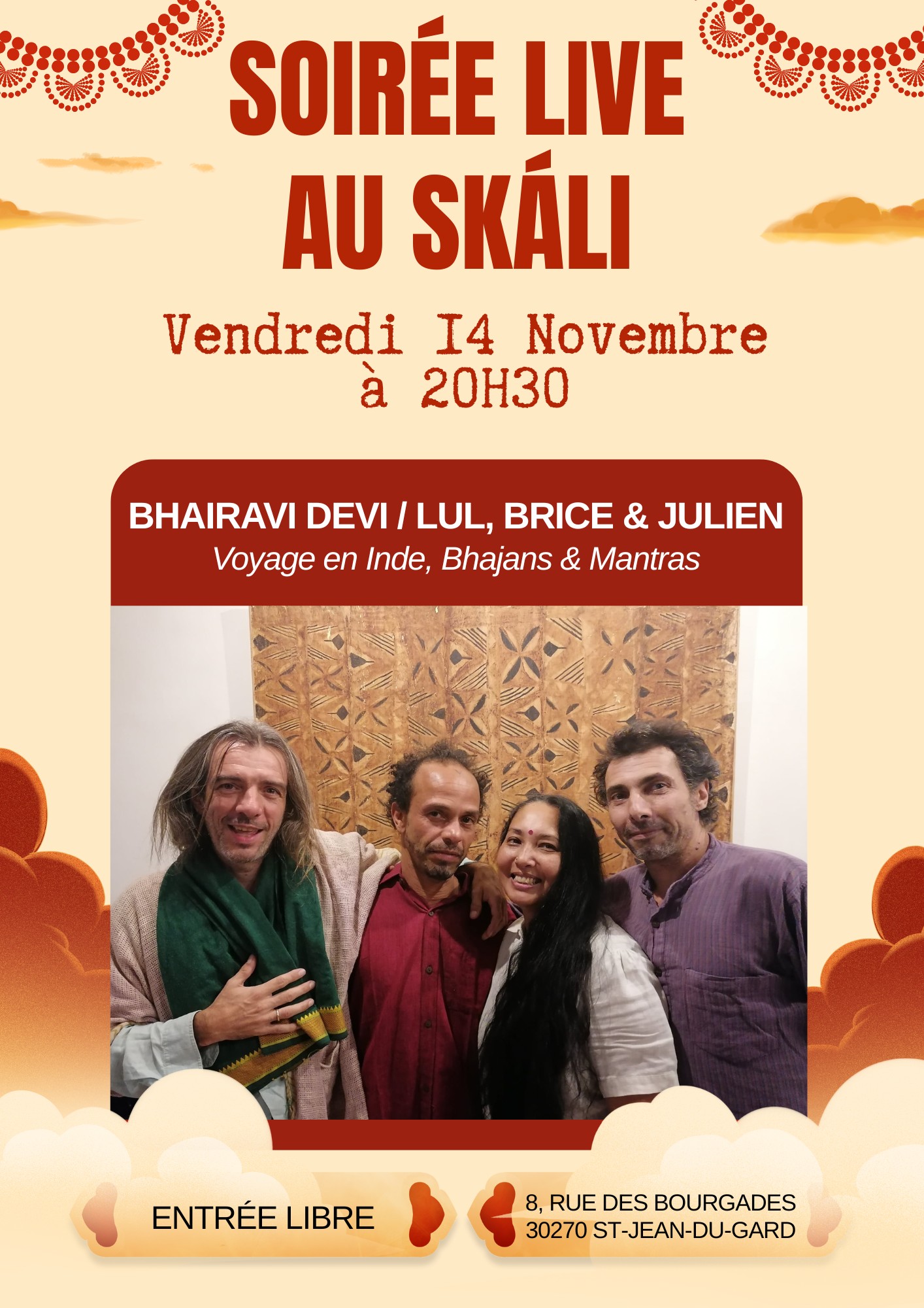 Le Skáli accueille Bhairavi Devi (alias Boney) accompagnée de Brice, Lul & Julien avec leurs percussions indiennes.Bhairavi Devi est née à Manipur dans le nord-est de l’Inde.