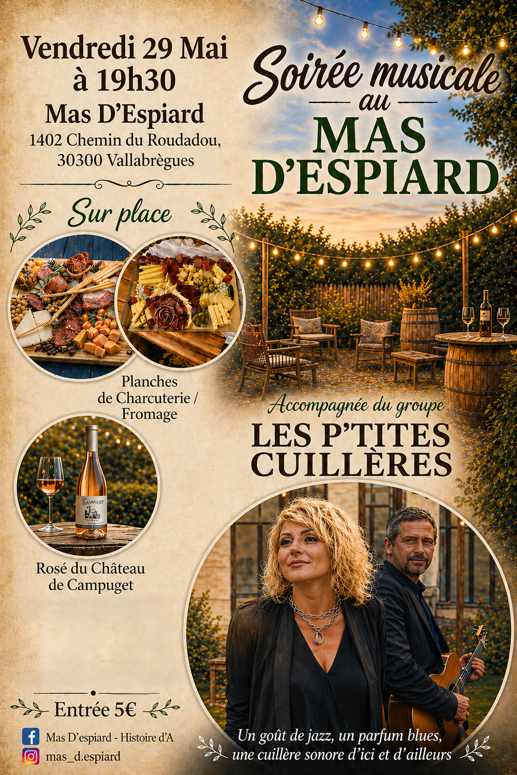Venez profiter d’une soirée placée sous le signe de la musique et de la convivialité au Mas d’Espiard !