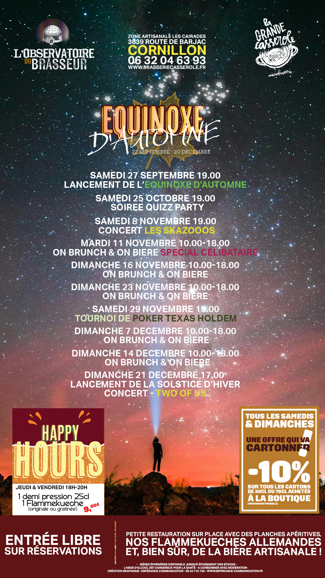 L’Observatoire du Brasseur, créateur et brasseur de la Grande Casserole, bière artisanale et locale accueille « Les Skazoooss », un néo groupe de musique pop-rock-funk qui vont ambiancer les levures de nos bières.