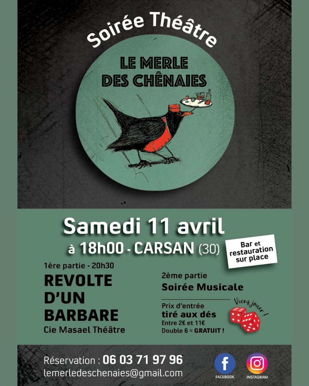 L’association Le Merle des Chênaies vous invite à venir partager une soirée théâtre rare et sensible, autour d’un spectacle qui sera présenté au Festival d’Avignon. Une belle occasion de le découvrir ici, dans un cadre convivial et proche du public.