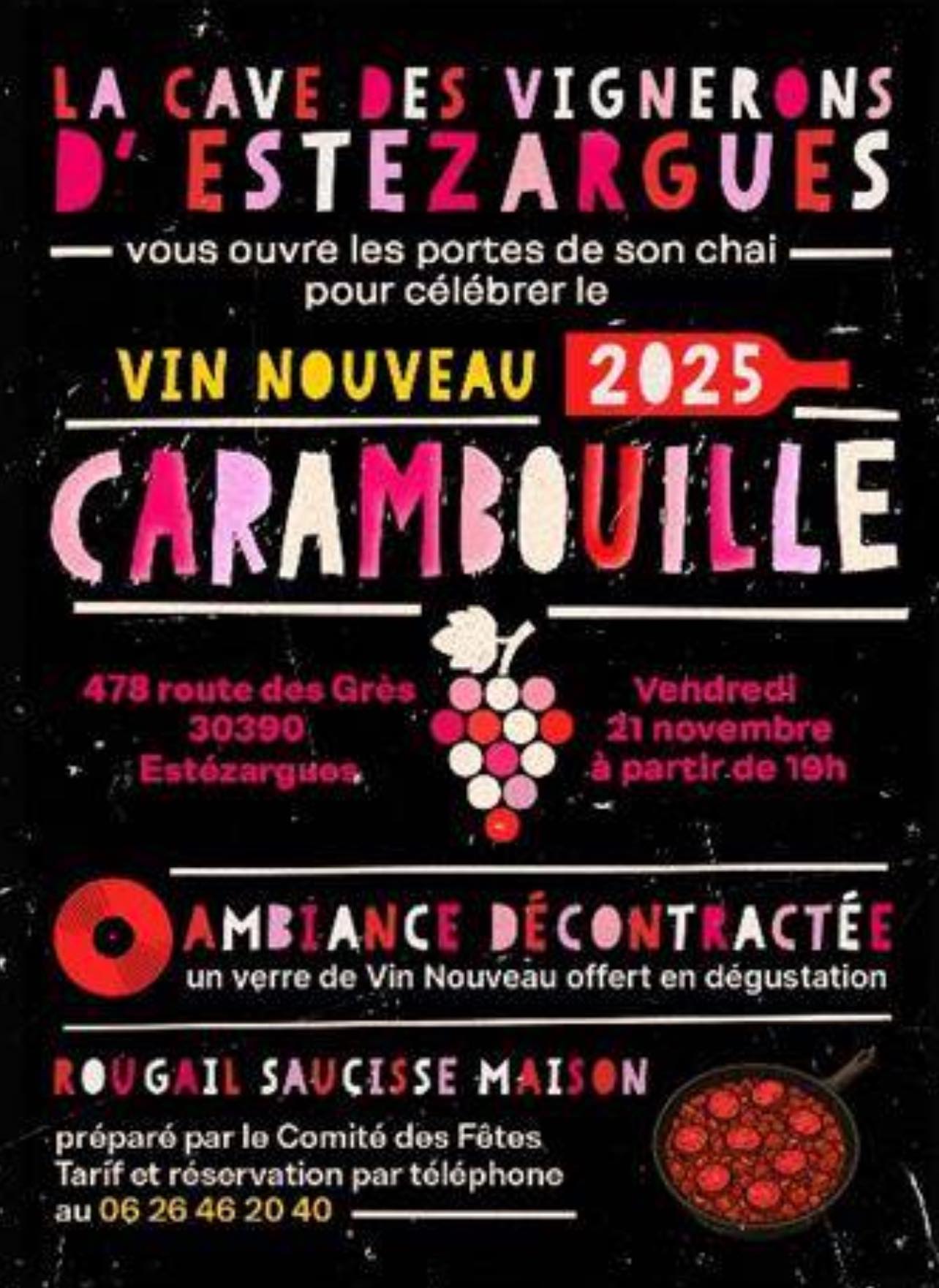 La Cave des Vignerons d’Estézargues vous ouvre les portes de son chai pour célébrer le vin nouveau. Venez passer un bon moment dans une ambiance décontractée. Un verre de vin nouveau offert en dégustation : à consommer avec modération !