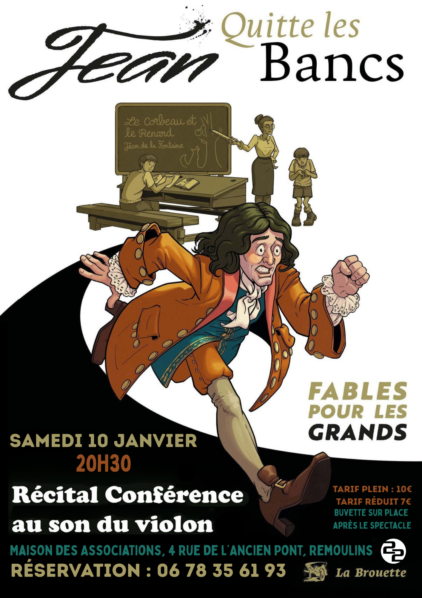 Elvira Kirkbride, qui est australienne, vous fera découvrir un regard nouveau sur la vie de Jean de La Fontaine et sur l’évolution de la fable. Philippe Téton, lui, contera avec brio douze fables soigneusement sélectionnées, accompagné d’Elvira, virtuose du violon. Un pur moment de douceur et de poésie !