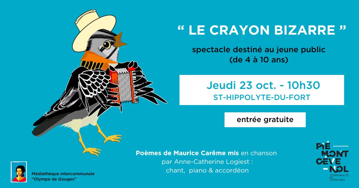 La poésie prend vie en musique avec Le crayon bizarre, un spectacle destiné au jeune public qui invite petits et grands à redécouvrir l’univers tendre et malicieux de Maurice Carême, par Anne Catherine Logiest.