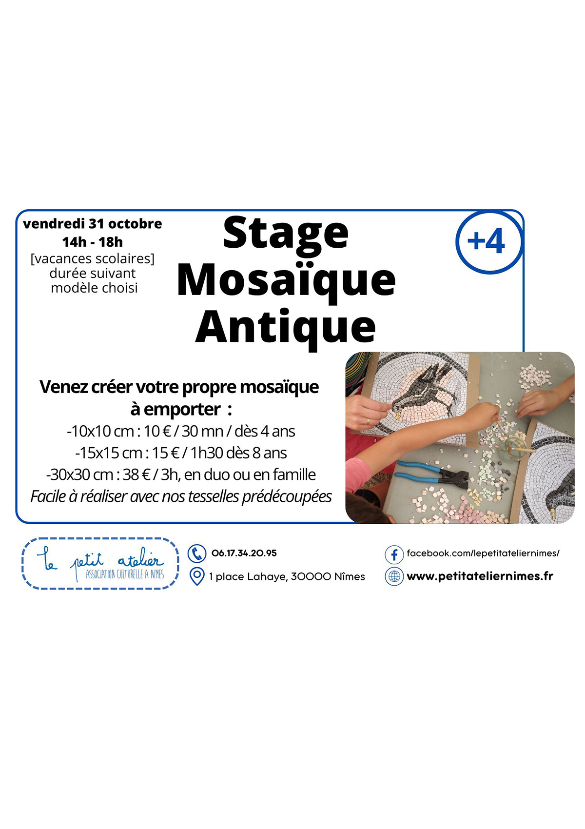 Stage de création mosaïque façon antique pour enfants et adultes