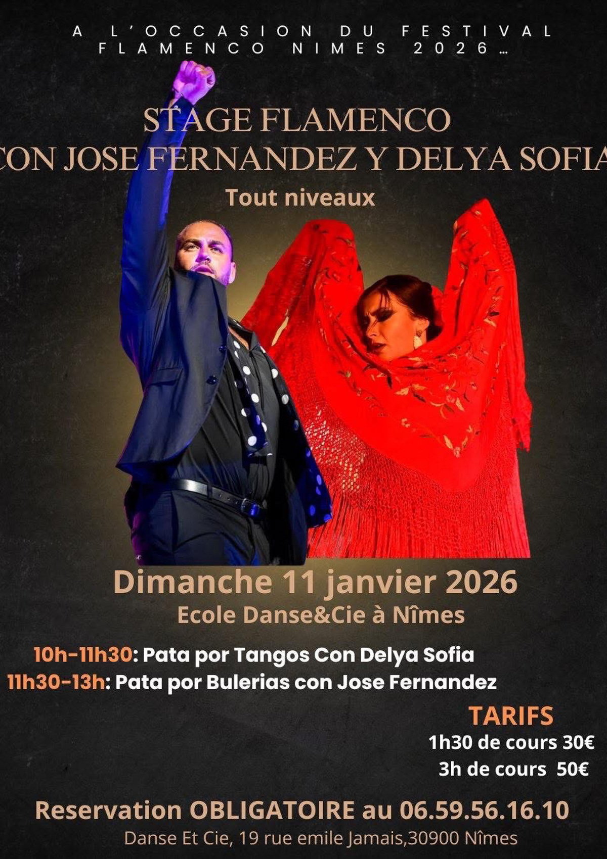 Stages por tangos y bulerías dès 10h à Danse & Cie : deux sessions avec Jose Fernandez y Delya Sofia. Un stage à 10h, un autre à 11h30, avec possibilité d’enchaîner les deux.