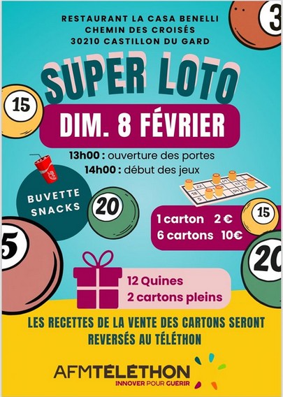 La Casa Benelli organise un Super Loto au profit du Téléthon qui récoltera les recettes de la vente des cartons. C’est le moment de faire une bonne action, tout en s’amusant, et même remporter l’un des nombreux lots.