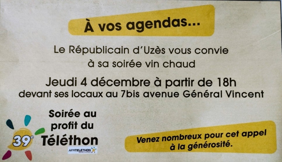 Retrouvez le large programme prévu à Uzès pour le 39ème Téléthon ! De nombreuses animations : démonstrations, défilé, stands de découverte, animations musicales, conférences… Des journées placées sous le signe de la générosité.