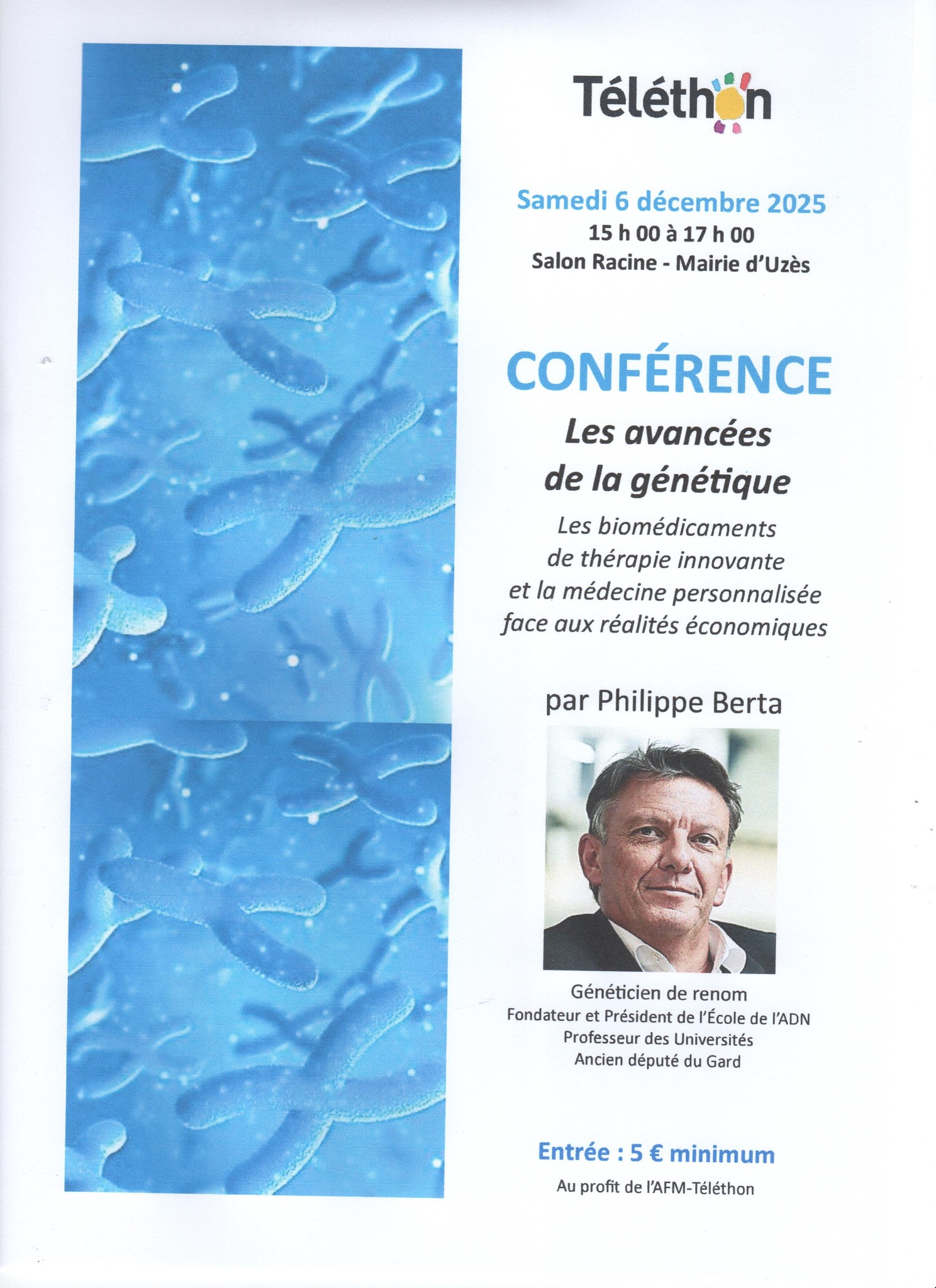Conférence à l’Annexe de Raymond Zakhia sur la génétique, proposé par l’Université populaire de l’Uzège. 5 €
