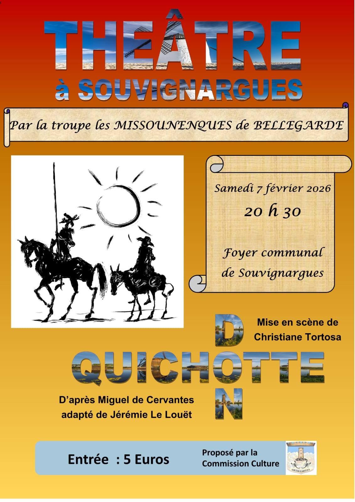 Un Don Quichotte revisité et délirant, d’après la pièce de Jérémie le Louet, dans une mise en scène de Christiane Tortosa. Par la Troupe de théâtre des Missounenques de Bellegarde.