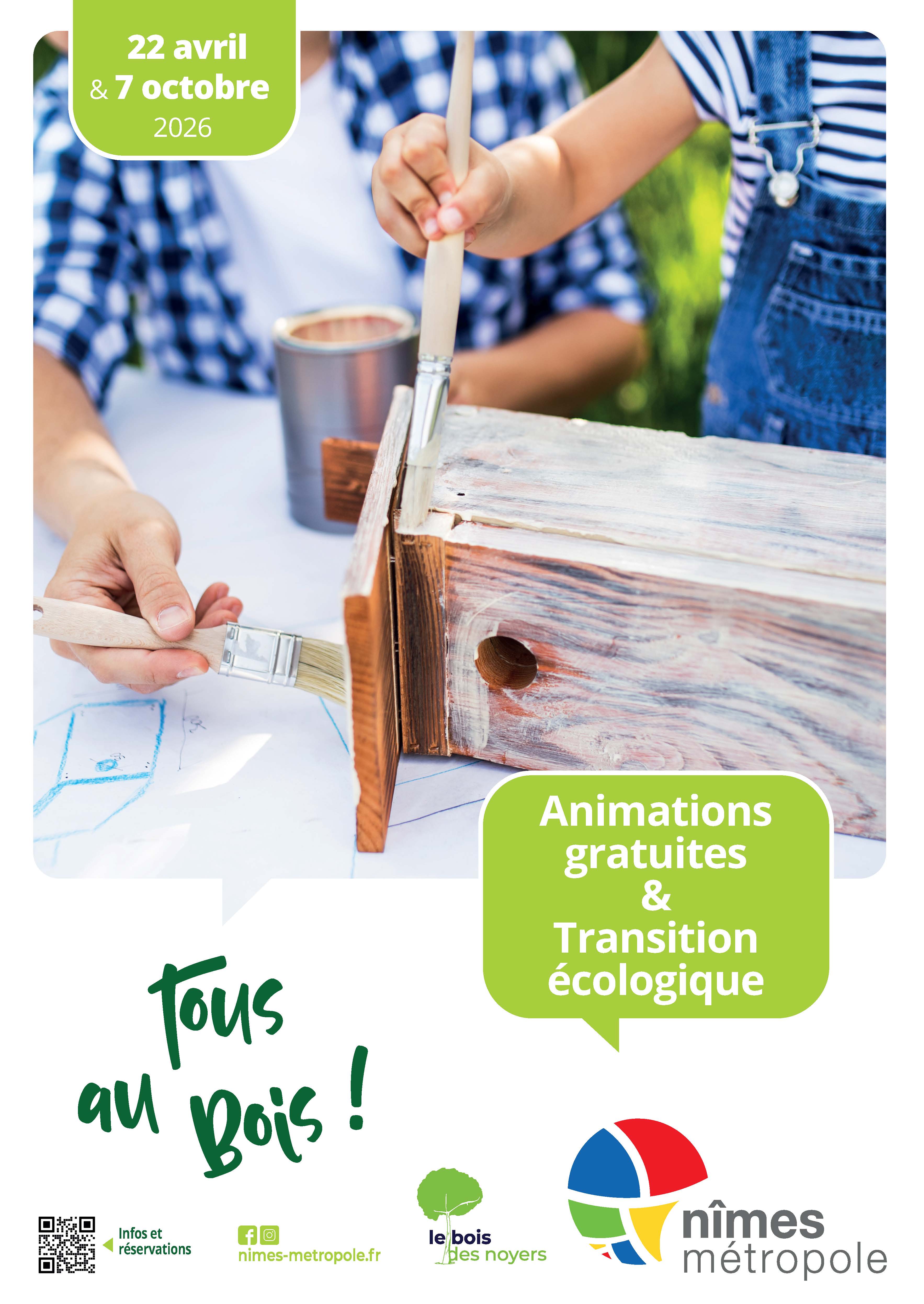 Ludiques et gratuites, les animations de cette 6e édition se déroulent les mercredis 22 avril et 7 octobre 2026 au cœur du Bois des Noyers.Pour certaines animations dont le nombre de places est limité, pensez à réserver via la billetterie en ligne.