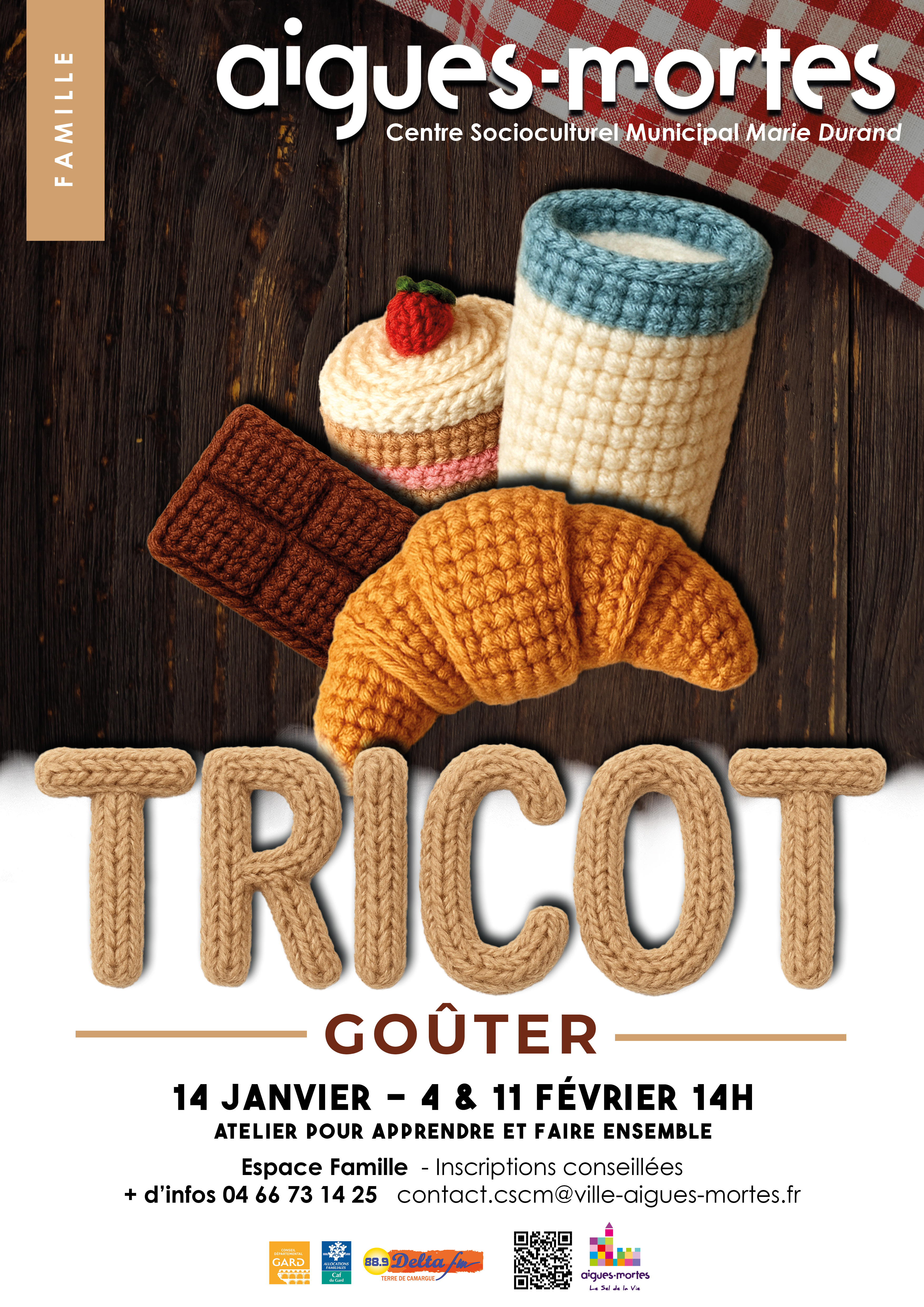 Partagez un temps convivial lors des après-midi tricot-goûter proposés au Centre socio-culturel Espace Famille. Ces moments de rencontre se dérouleront le 14 janvier, 4 février et 11 février. Débutants comme initiés sont les bienvenus pour venir avec leur création, échanger conseils et techniques, et prendre un goûter. Ces rendez-vous sont ouverts à tous.