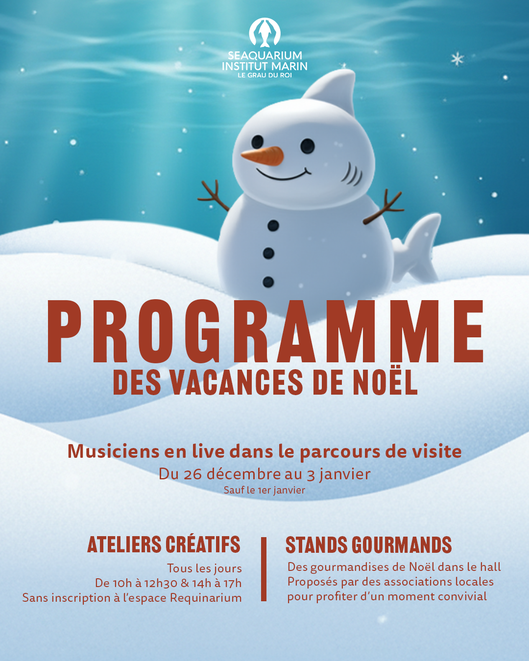 Programme des Vacances de Noël au SeaquariumDu 20 décembre 2025 au 4 janvier 2026, venez plonger dans la magie des fêtes au Seaquarium, avec un programme d’animations quotidiennes pour petits et grands. Ateliers créatifs en continu