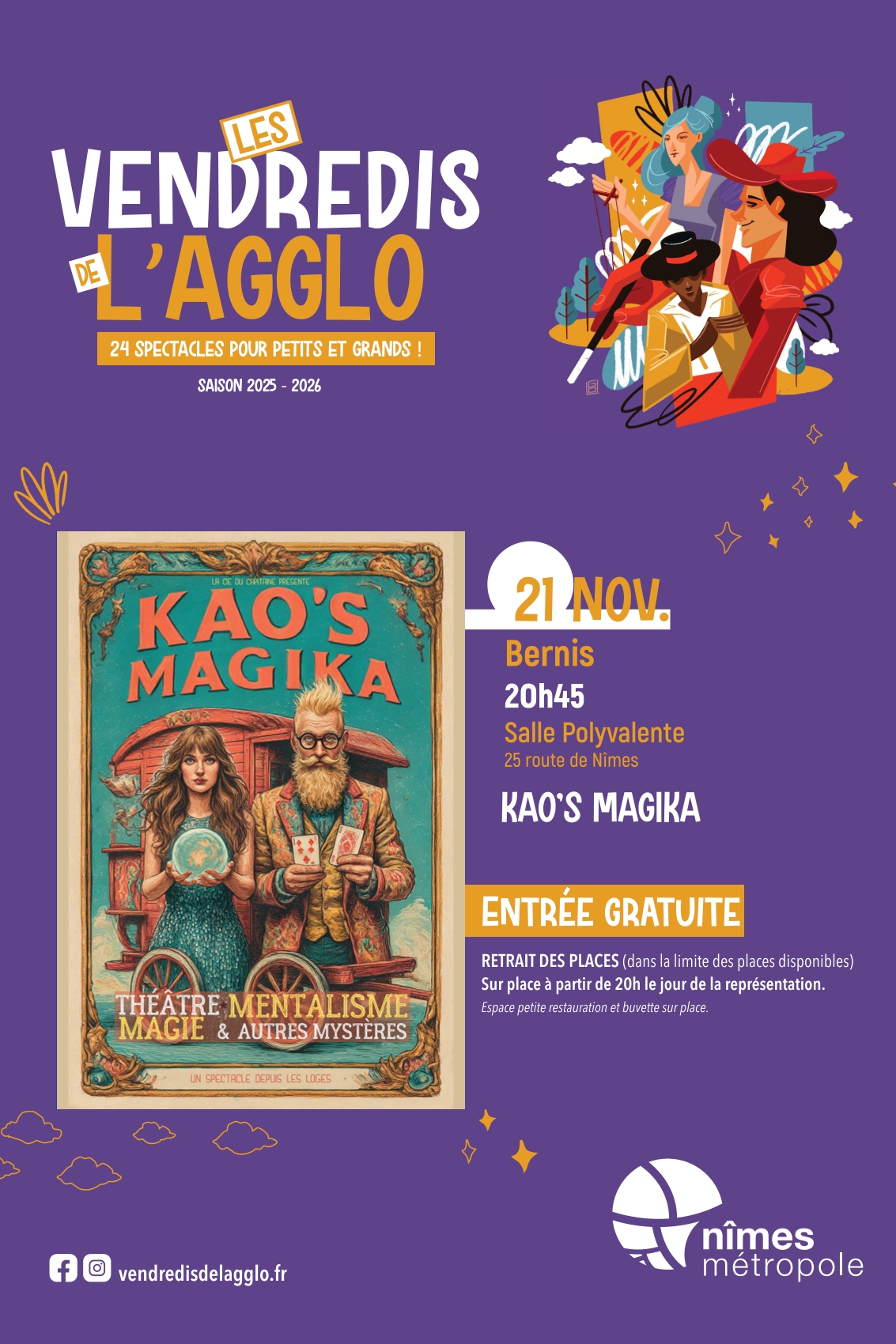 « Ils parcourent les routes en compagnie du grand Calétigna etde tous ses artistes qui font le show de Kao’s Magika. Venez mesdames et messieurs, partager la roulotte d’un duo d’illusionnistes et vivez avec eux les moments forts de leur carrière…»
