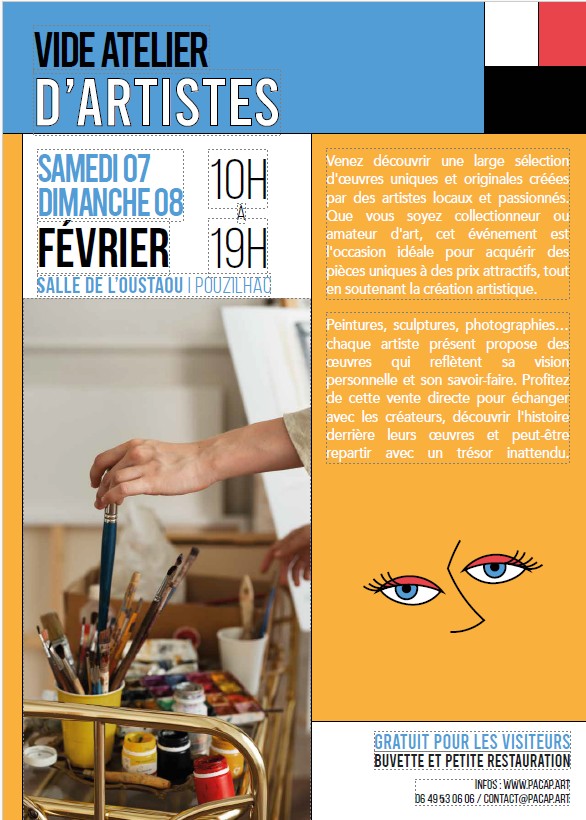 L’association P.A.C.A.P. invite tous les artistes à participer à son Vide Atelier, les 7 et 8 février 2026 à la Salle de l’Oustaou de Pouzilhac.