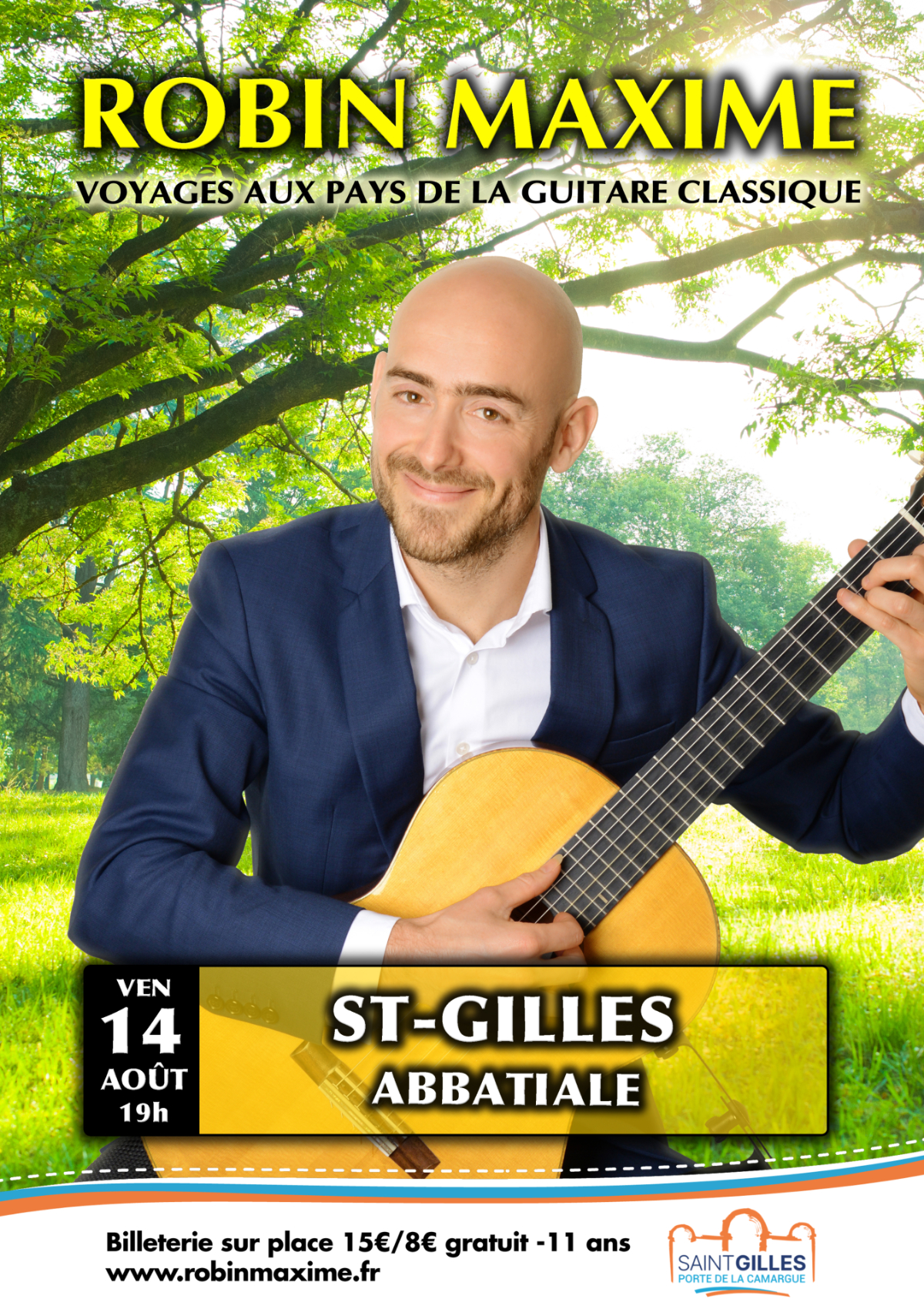 Grâce à l’acoustique exceptionnelle de l’abbatiale de Saint-Gilles, Robin Maxime vous entraîne dans un merveilleux voyage entre l’Argentine, l’Italie, le Brésil, l’Espagne, la France, l’Allemagne, le Paraguay… Ce concert propose un programme varié, cocktail détonant de fougue, de joie et de douceur.