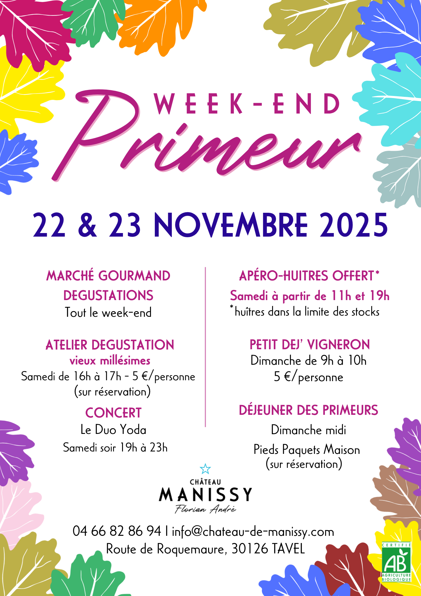 Marché gourmand et dégustations tout le week end Atelier dégustation de vieux millésimes – samedi de 16h à 17h (5€ par personne – sur réservation) Concert de Duo Yoda samedi soir de 19h à 23h