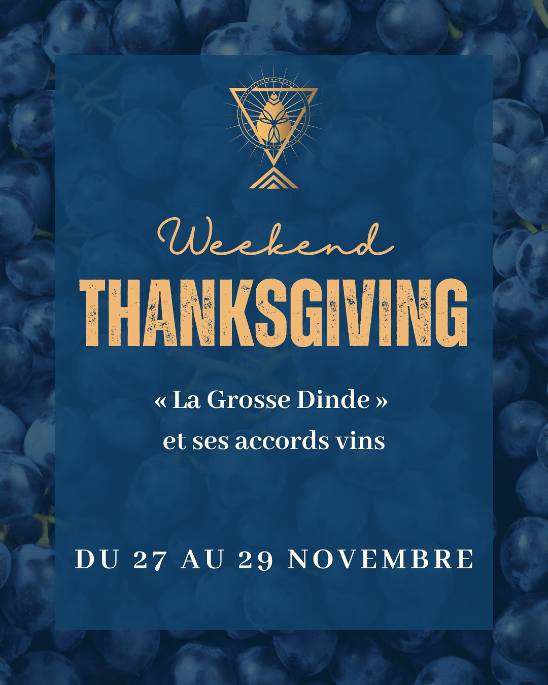Du 27 au 29 novembre, venez célébrer Thanksgiving à la française avec un menu généreux et festif autour de « La Grosse Dinde », notre plat star spécialement préparé pour l’occasion. Pour sublimer cette tradition revisitée, nous vous proposerons une sélection d’accords mets et vins soigneusement choisis : rouges puissants, blancs élégants, cuvées surprises… Il y en aura pour tous les palais ! Un moment de partage, de rires et de découvertes gustatives dans une ambiance chaleureuse et conviviale. Réservez dès maintenant votre table et venez fêter Thanksgiving comme il se doit, en famille ou entre amis.