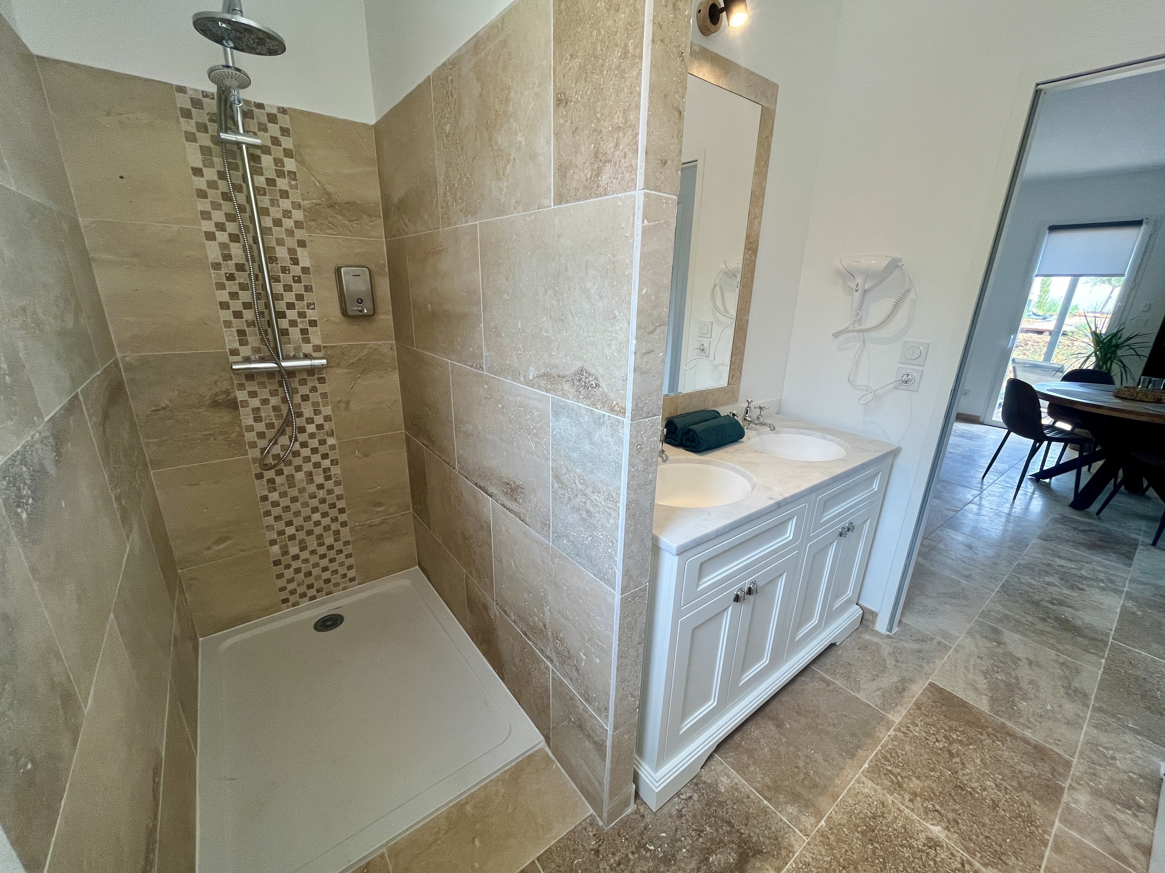 L’appartement n° 2 peut accueillir jusqu’à 4 personnes dans 2 chambres doubles. L’appartement est situé au rez-de-chaussée et dispose d’une terrasse privée en bois exotique avec une pergola et des meubles de jardin.Tous nos appartements ont des cuisines entièrement équipées avec four, micro ondes, plaque à induction et hotte aspirante, machine à espresso, grille-pain, bouilloire, et lave-vaisselle. Vous profiterez également d’une Smart TV, de l’air conditionné, sèche cheveux, accès WIFI, fer et table à repasser. Certains appartements ont un lave-linge. Le linge de lit et de toilette est fourni ainsi que quelques produits d’accueil (gel douche, thé , café…)