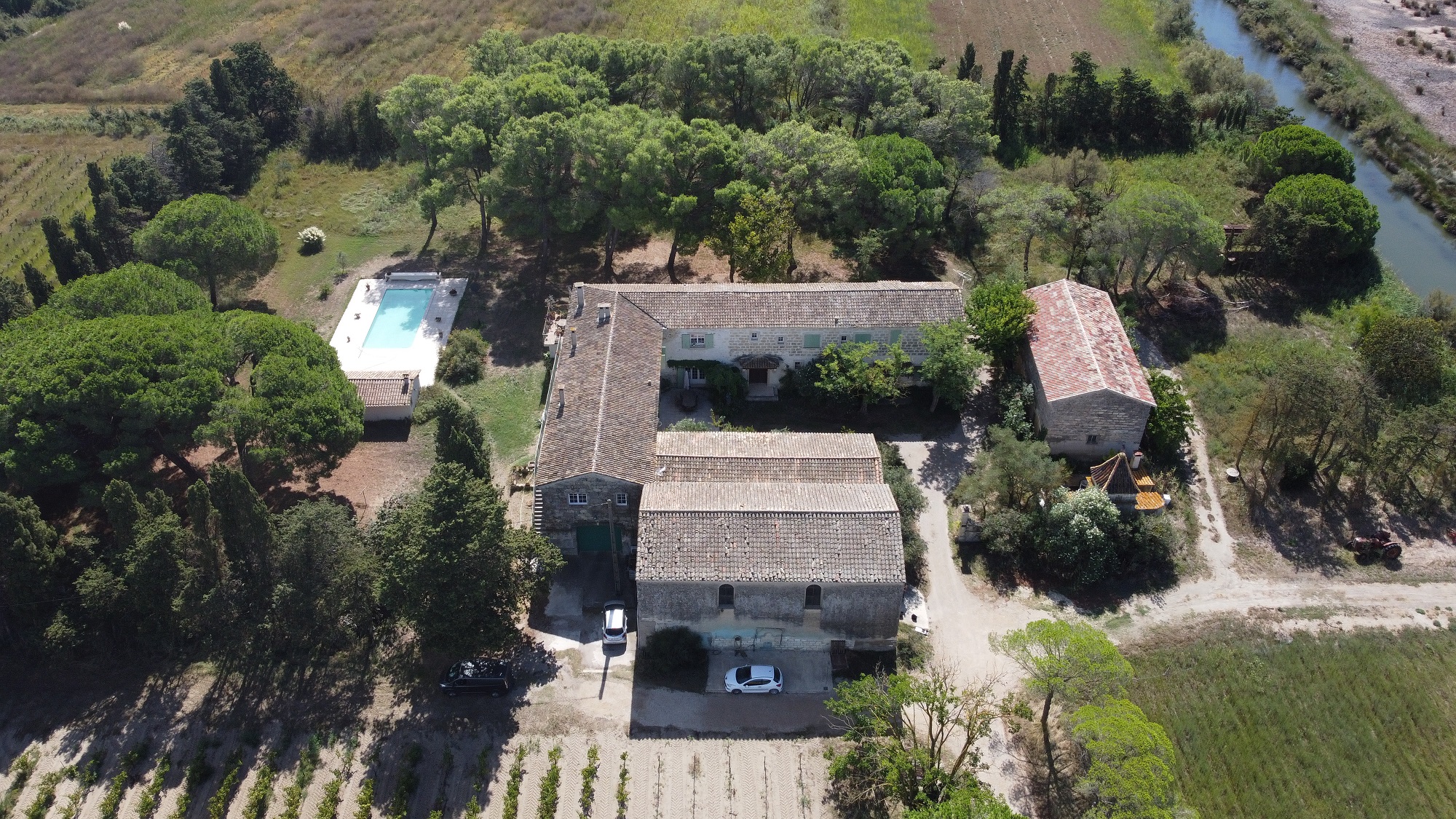 Rivière ou fleuve à moins de 300 m, En périphérie de la ville, Isolé, Village à -2 km, Sur une exploitation agricole, Au bord de l’eau, Etang à moins de 5 km, Dans un vignoble / domaine viticole