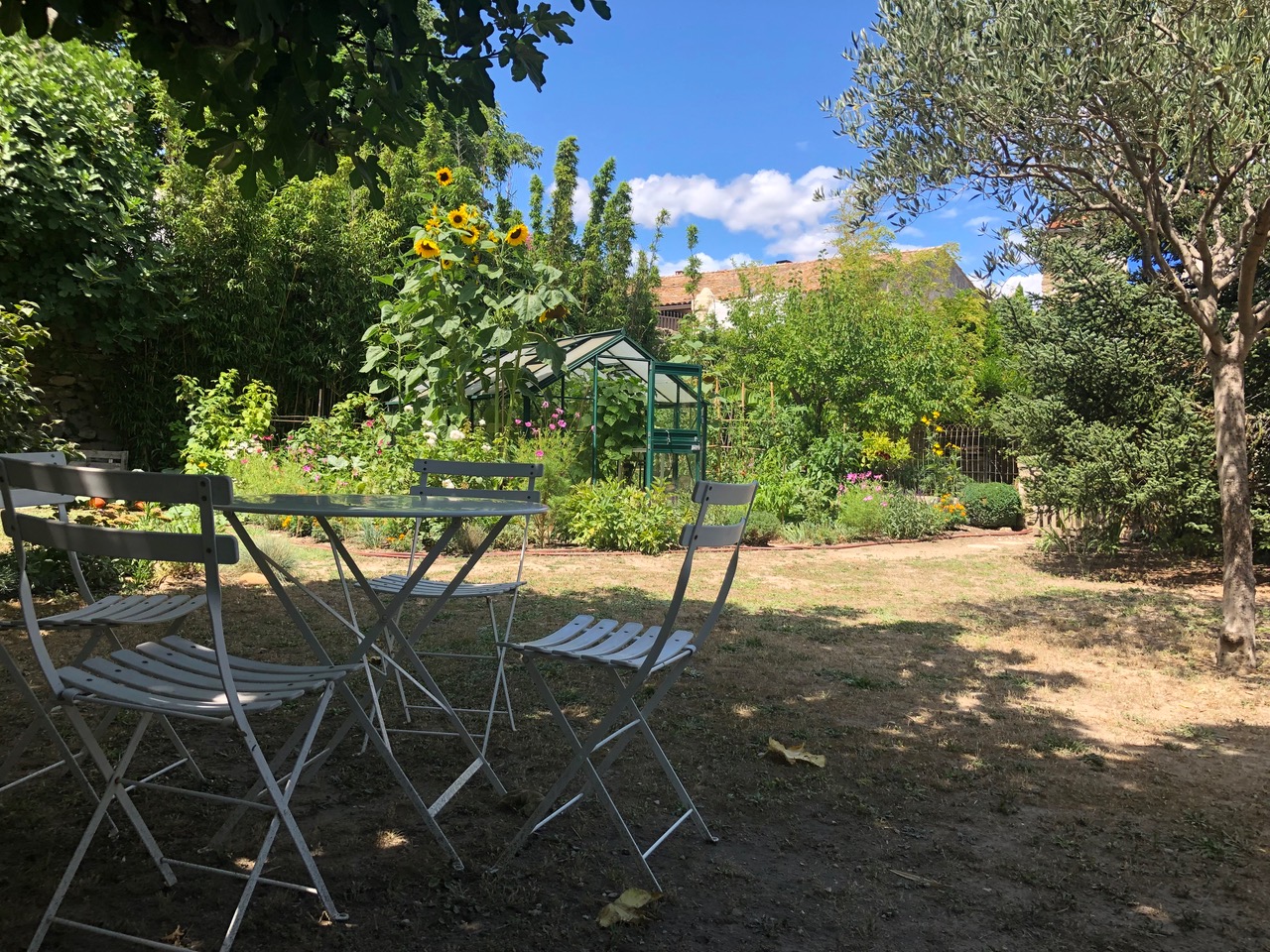 Le logement donne sur notre jardin, un jardin naturel où vous pourrez vous détendre. Appréciez le calme dans l’ombre d’un vieux figuier avec un verre de rosé bien frais accompagné des olives et d’autres délices que vous aurez trouvé sur les marchés provençaux le matin…