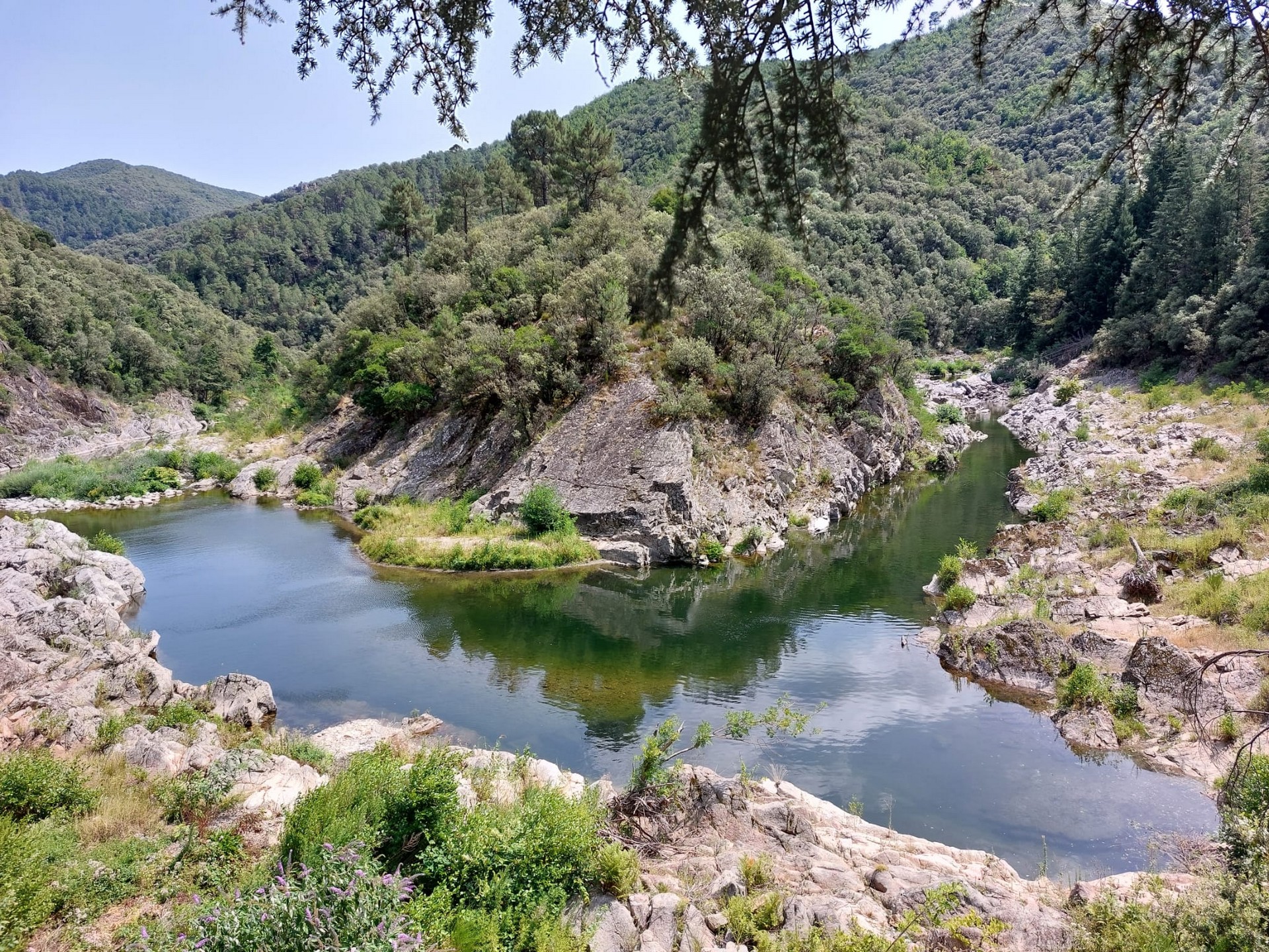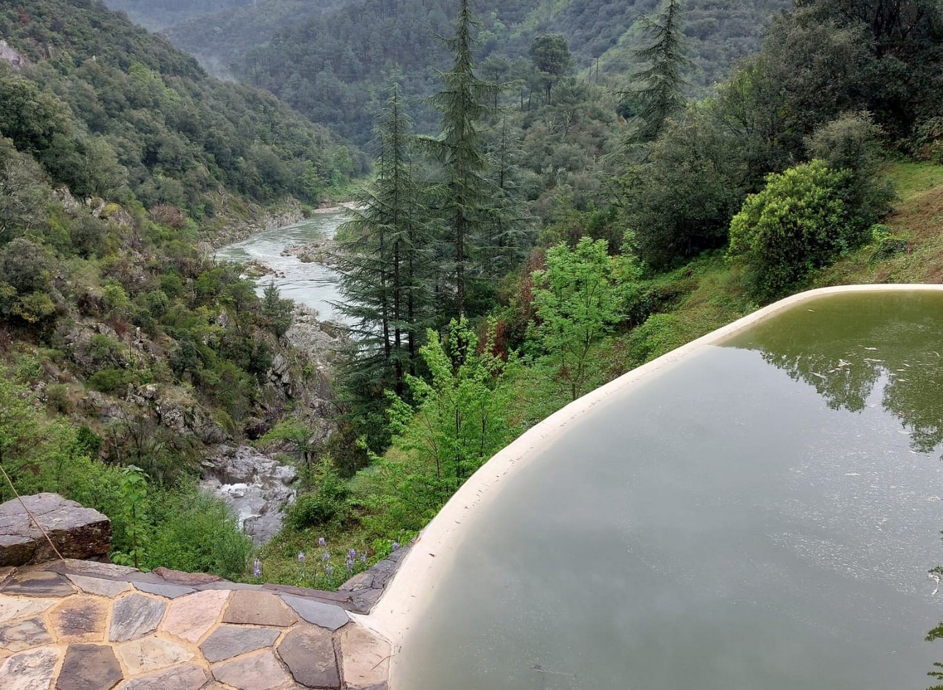 La piscine à débordement est une terrasse plus bas avec son terrain de pétanque attenant, la rivière et ses petite plages privées en contre-bas en suivant un sentier escarpé. Déconseillée aux très jeunes enfants de 2 à 7 ans ; beaucoup d’escalier à l’extérieur.