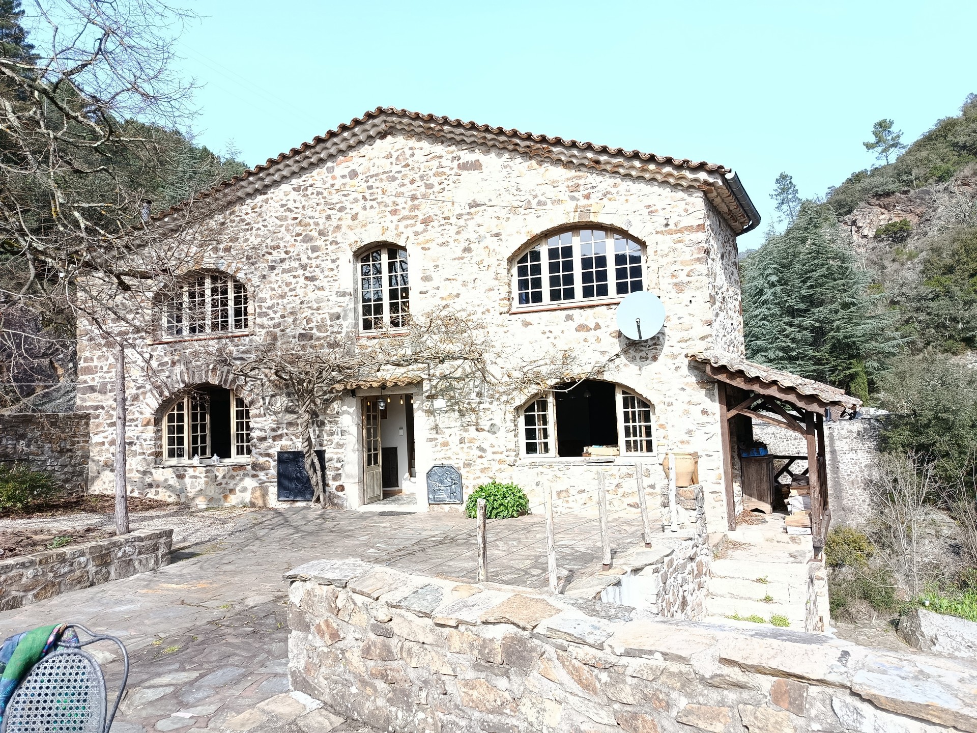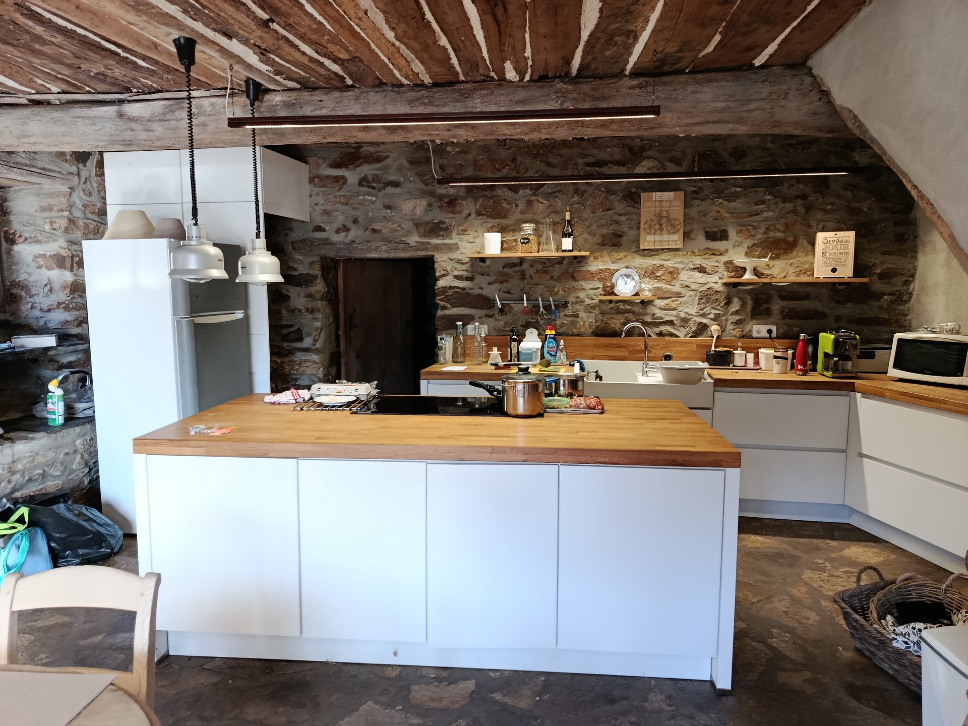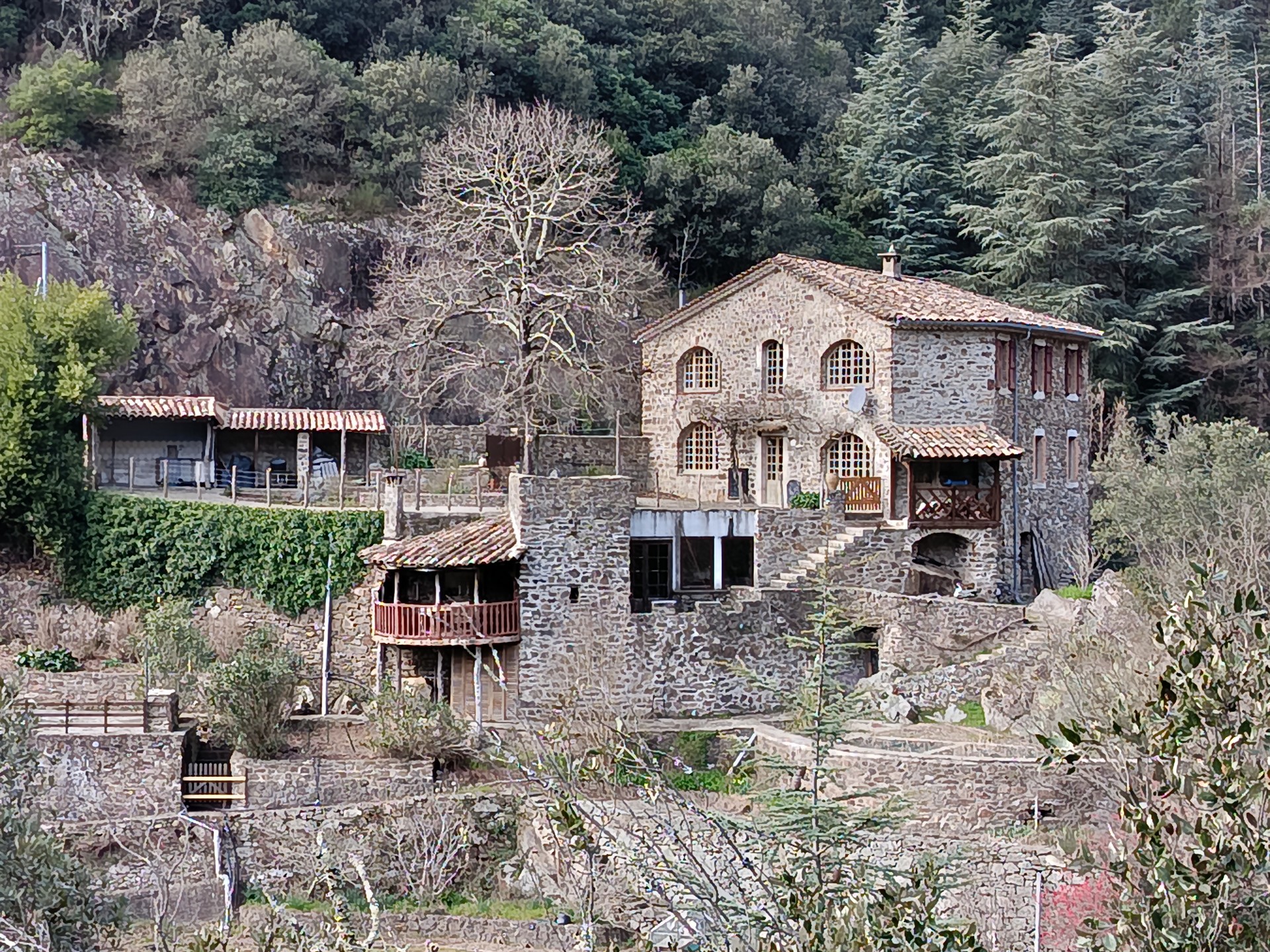 Grande maison ancienne, entourée de belles terrasses cévenoles avec un accès à la rivière. Très belle mise en valeur intérieure et extérieure, avec un large espace de vie de plain-pied depuis la cuisine. Cuisine conviviale équipée d’un four à pizza