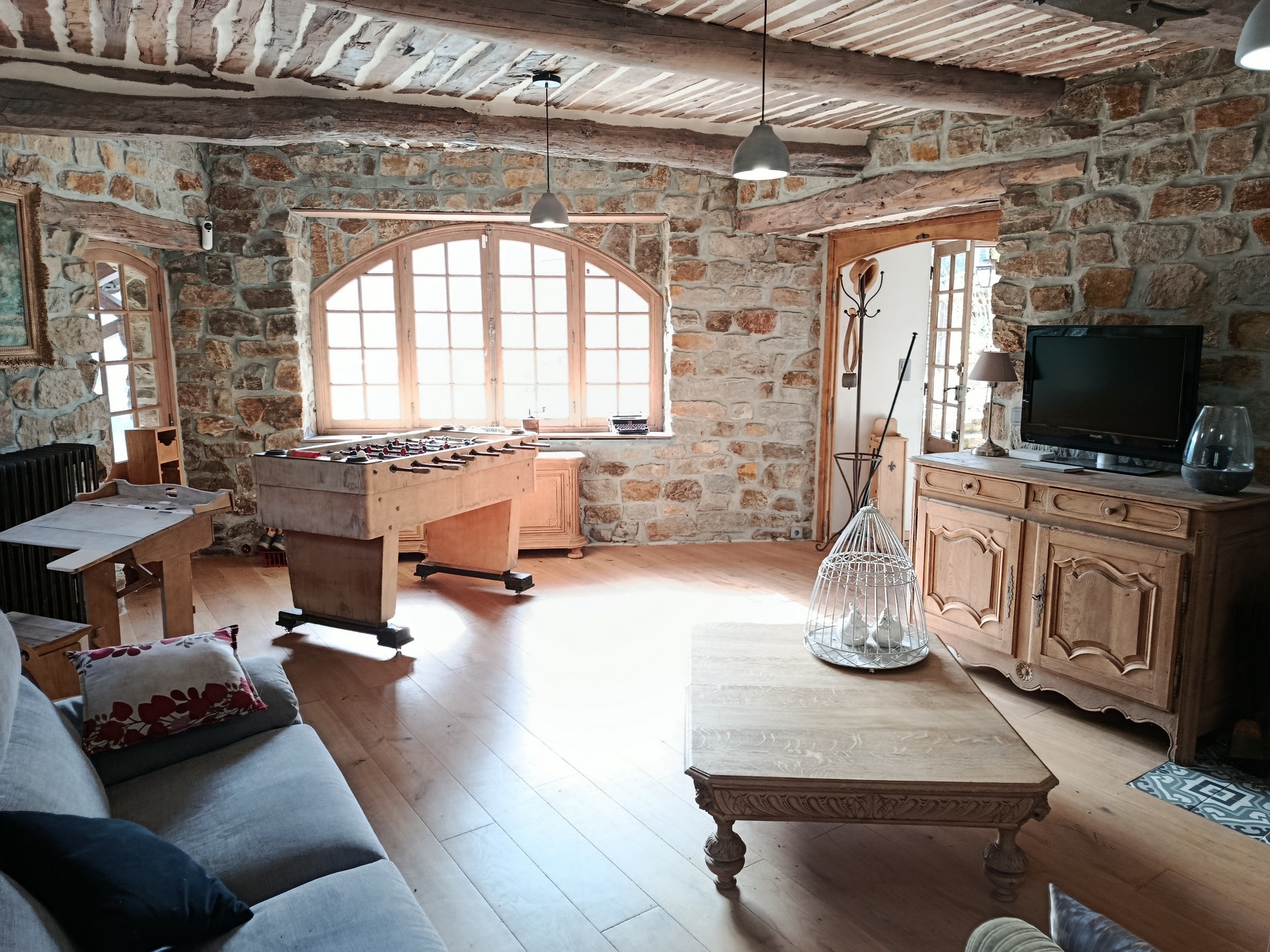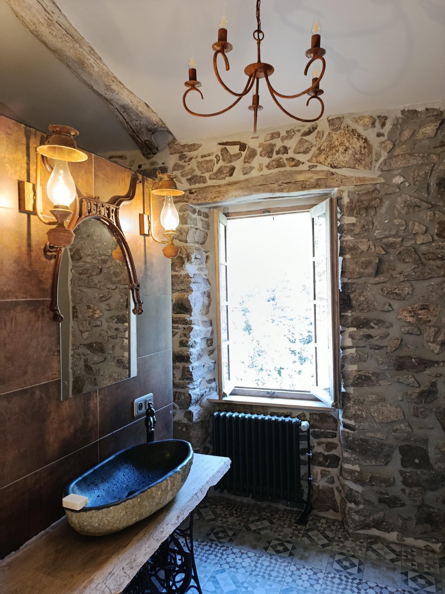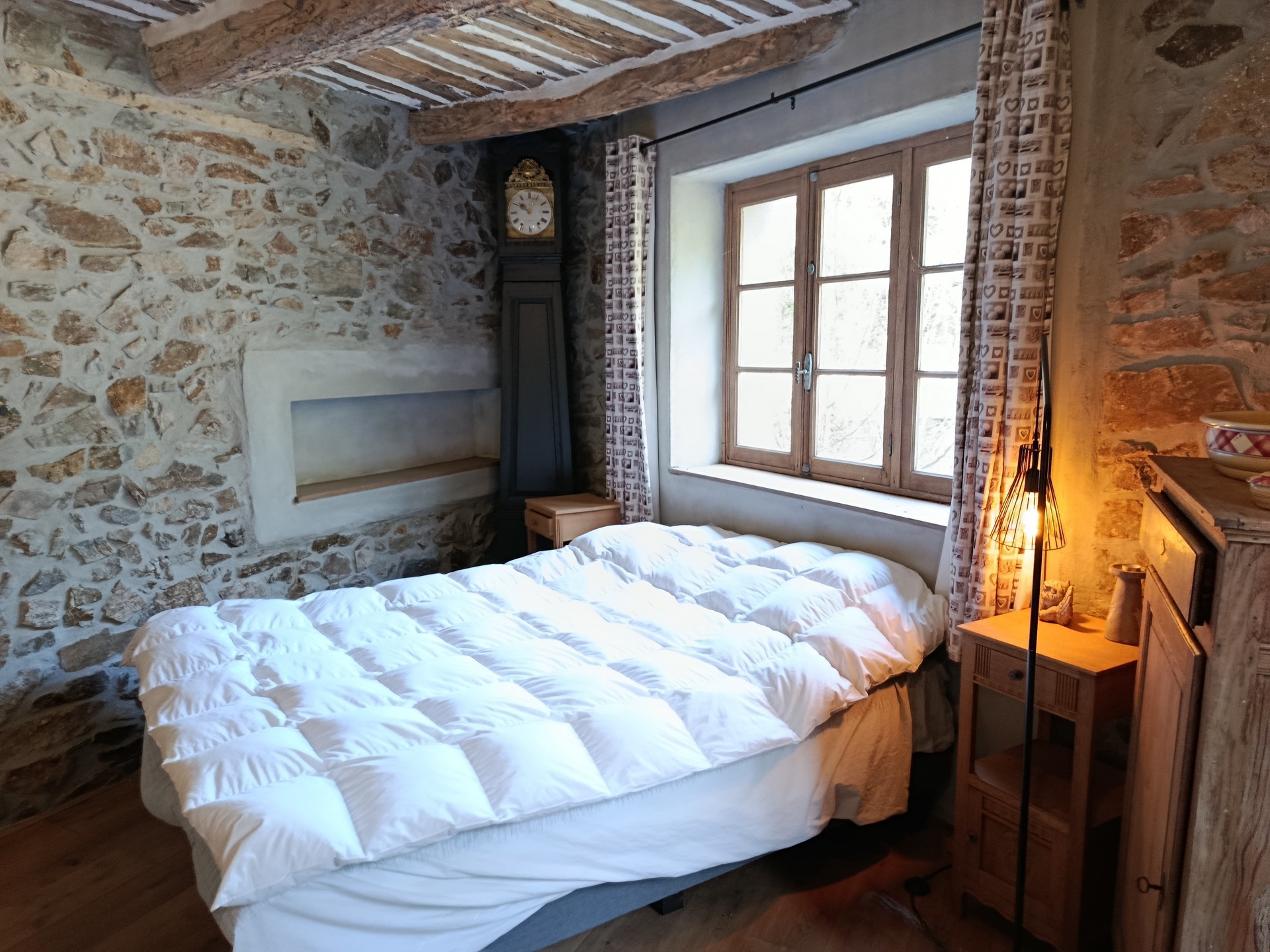 Grande maison ancienne, entourée de belles terrasses cévenoles avec un accès à la rivière. Très belle mise en valeur intérieure et extérieure, avec un large espace de vie de plain-pied depuis la cuisine. Cuisine conviviale équipée d’un four à pizza