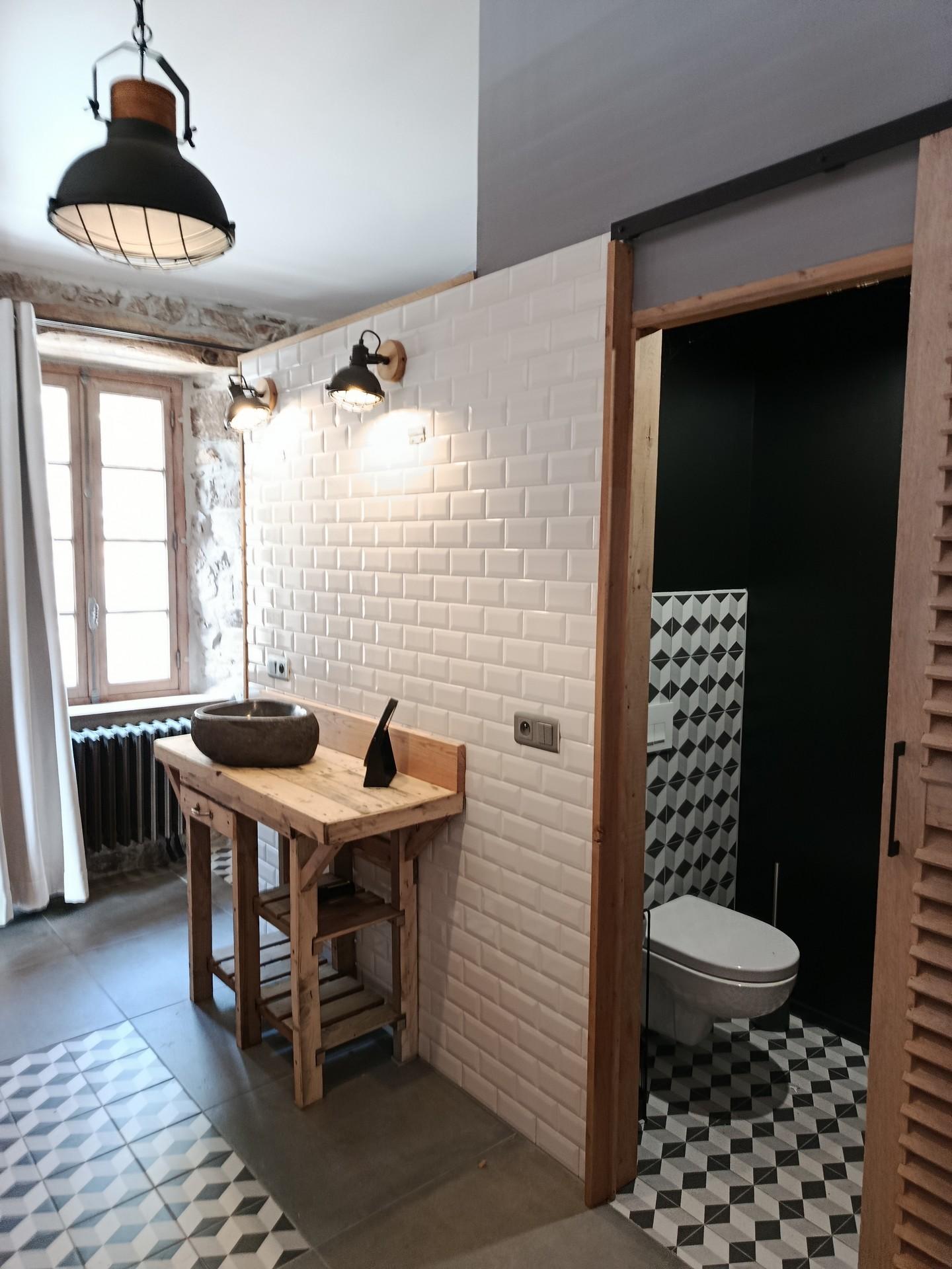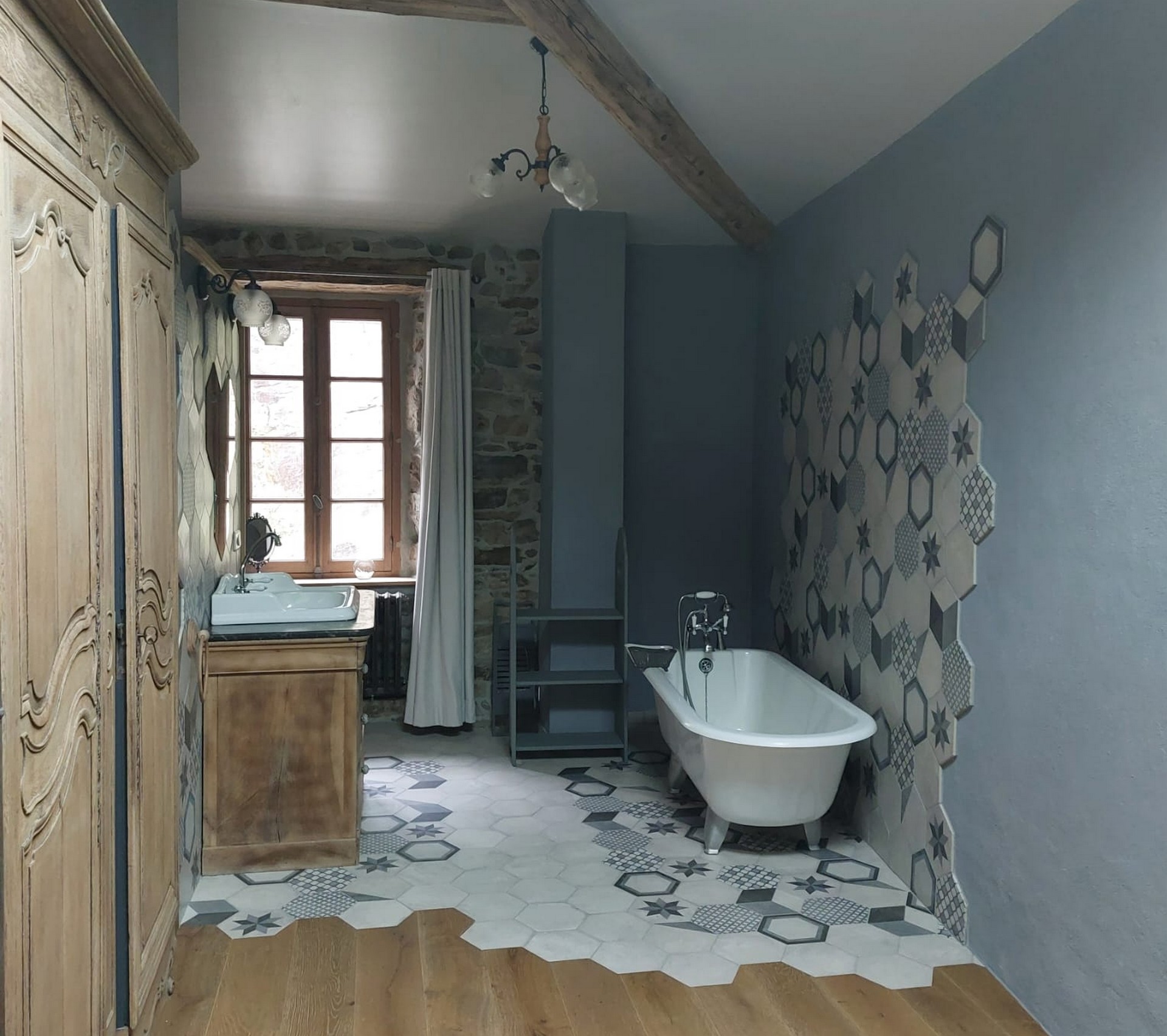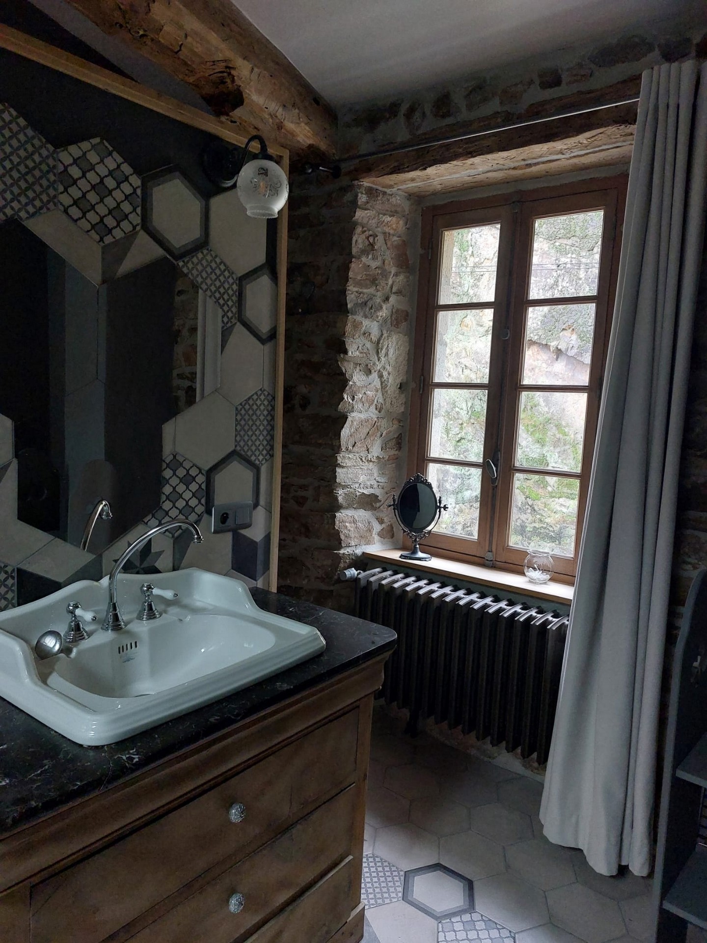 Les 4 chambres sont équipées d’une douche ou d’une baignoire,, d’un grand coin lavabo et de leur propre WC. Une des chambres est en rez- de chaussée.