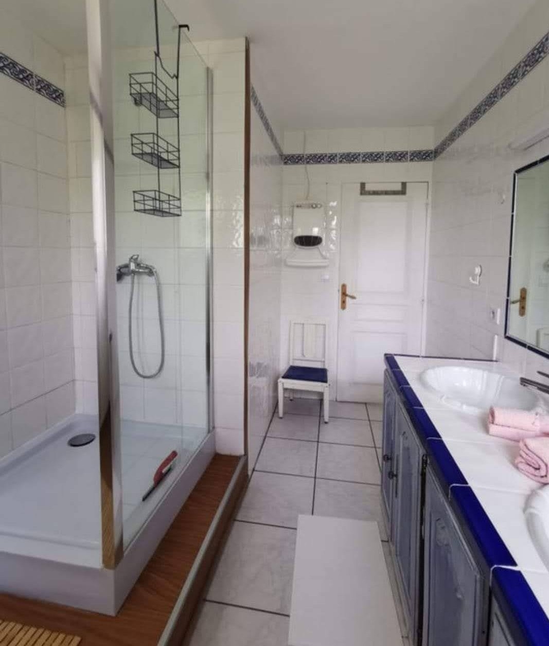 – Salle d’eau avec double lavabo et douche, toilettes séparées avec douche,