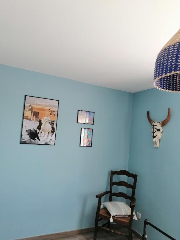 Chambre « CAMARGUE » avec vue sur la piscine.