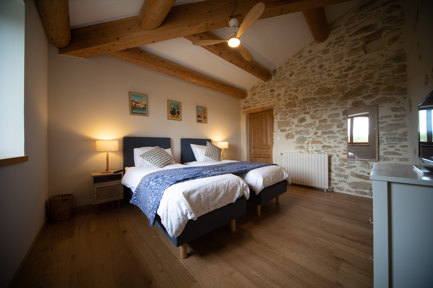 Grand logement haut-de-gamme avec une ou deux chambres pour un séjour romantique ou familiale avec un maximum de luxe et confort. Entièrement rénové avec gout au 2e étage de notre Mas.