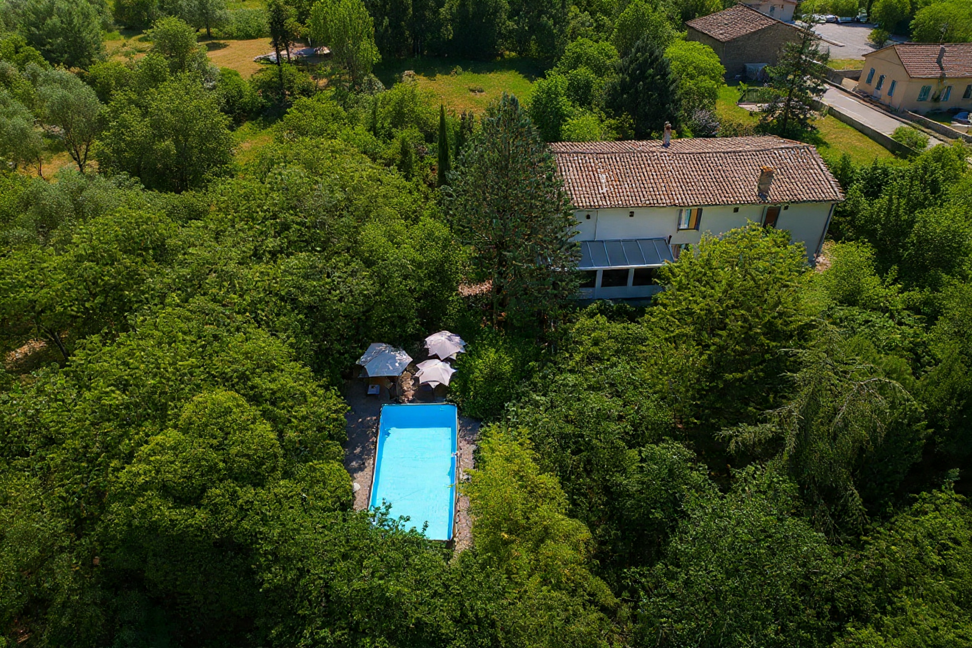 Détente et bien-être : Profitez de notre grand jardin, de la piscine hors-sol, et de transats installés à l’ombre des oliviers pour un moment de relaxation en toute intimité.