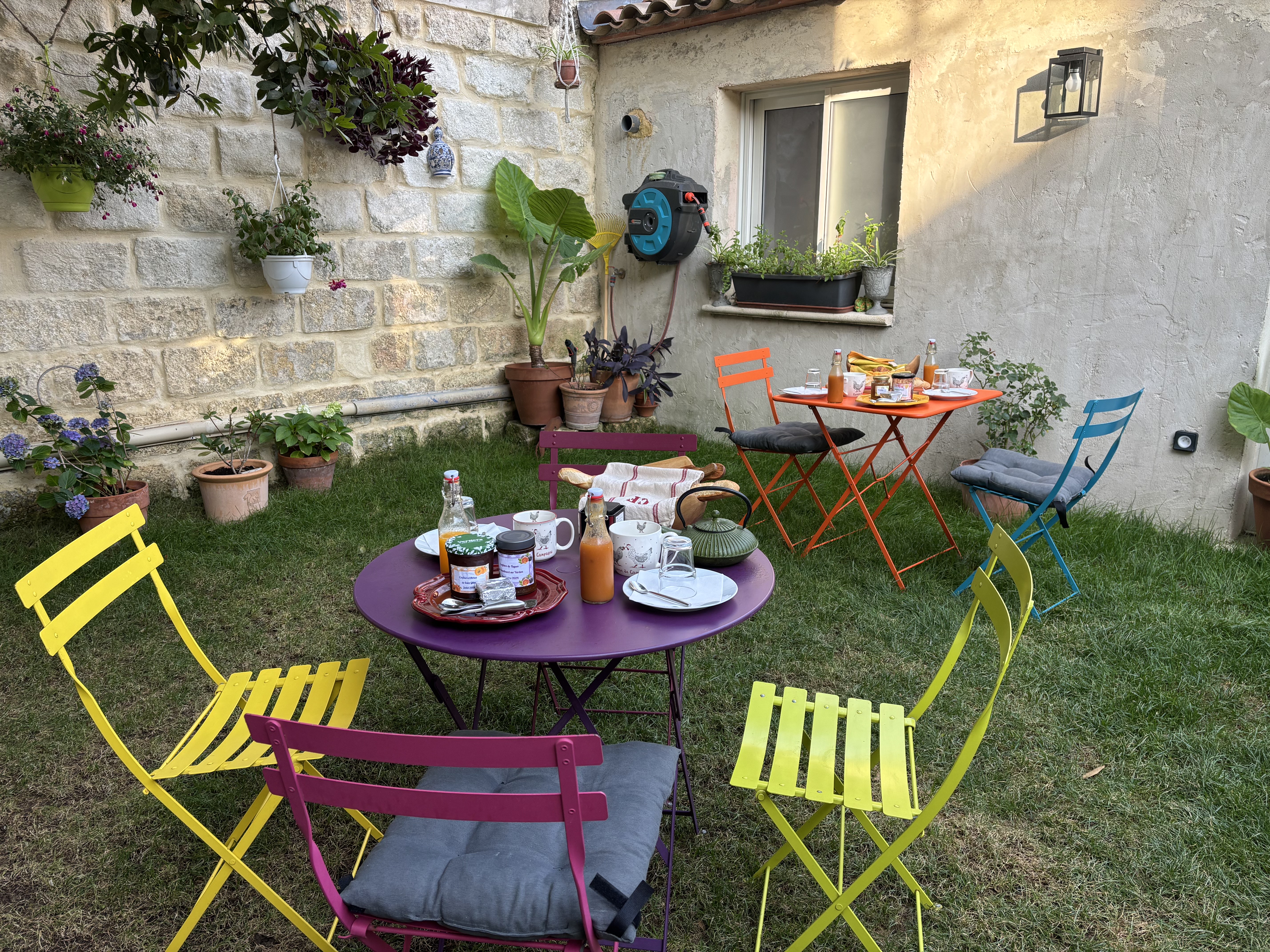 Maison sol en ciel est une charmante maison de village située dans les quartiers calmes des remparts d’Aigues-Mortes. Plus qu’un simple hébergement, elle offre une véritable expérience de chambre d’hôte, avec un accueil chaleureux et personnalisé par la propriétaire, native de la ville, qui partagera avec plaisir ses meilleures adresses et recommandations pour découvrir la région. Vous séjournerez dans l’une des trois belles chambres tout confort (climatisation, WiFi, TV) et profiterez d’un espace convivial avec terrasse donnant sur une cour intérieur. Un délicieux petit-déjeuner maison, préparé avec des produits frais, est inclus. Les chiens sont les bienvenus, avec possibilité de gardiennage sur demande. Un garage sécurisé est à votre disposition pour ranger vos vélos et motos, et une carte de parking est fournie pour un stationnement gratuit sur les parkings en ville.