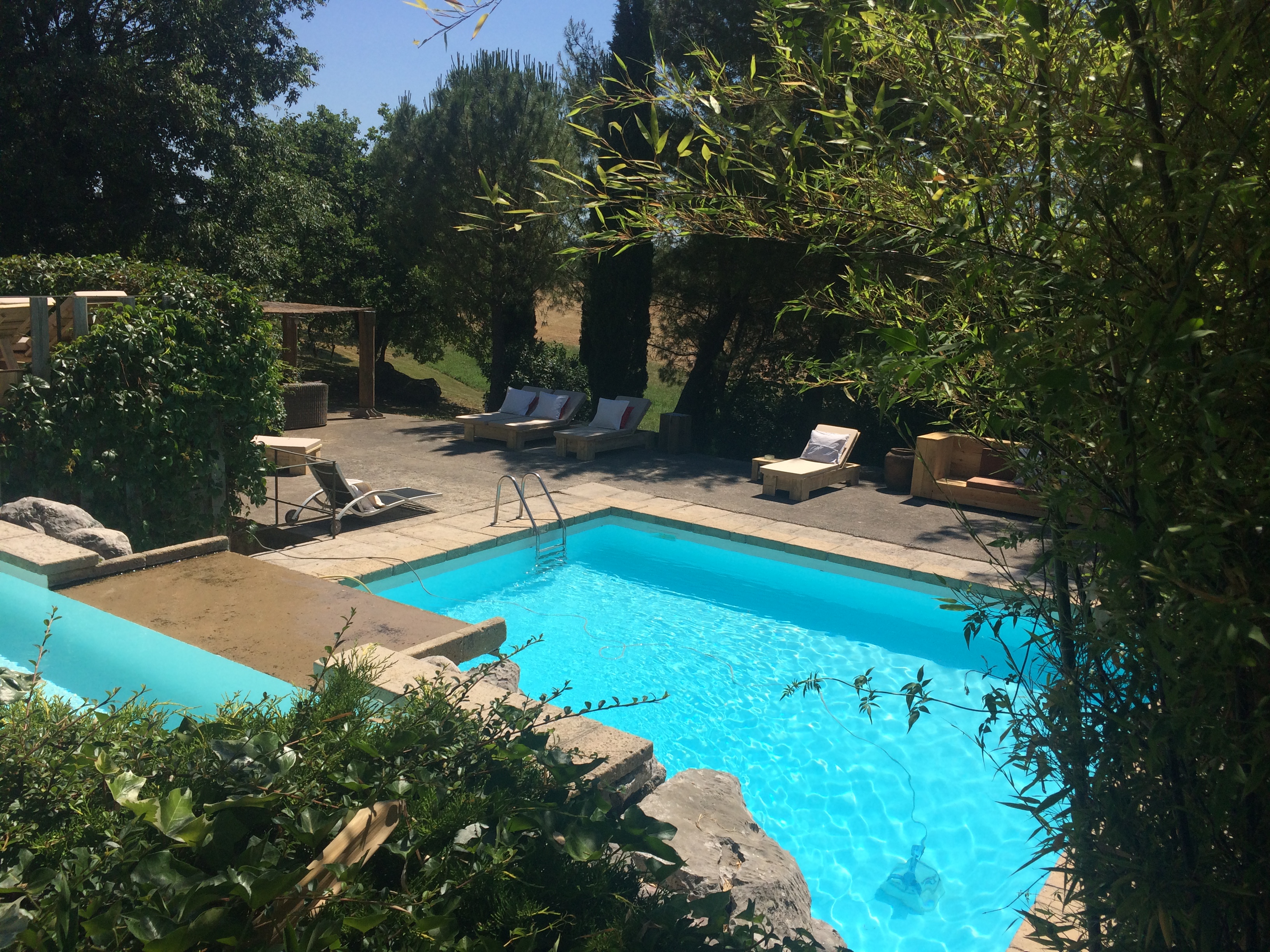 Vous avez également votre disposition une piscine adossée à un bosquet de pins parasols et une autre petite piscine devant l’un des Mazets.