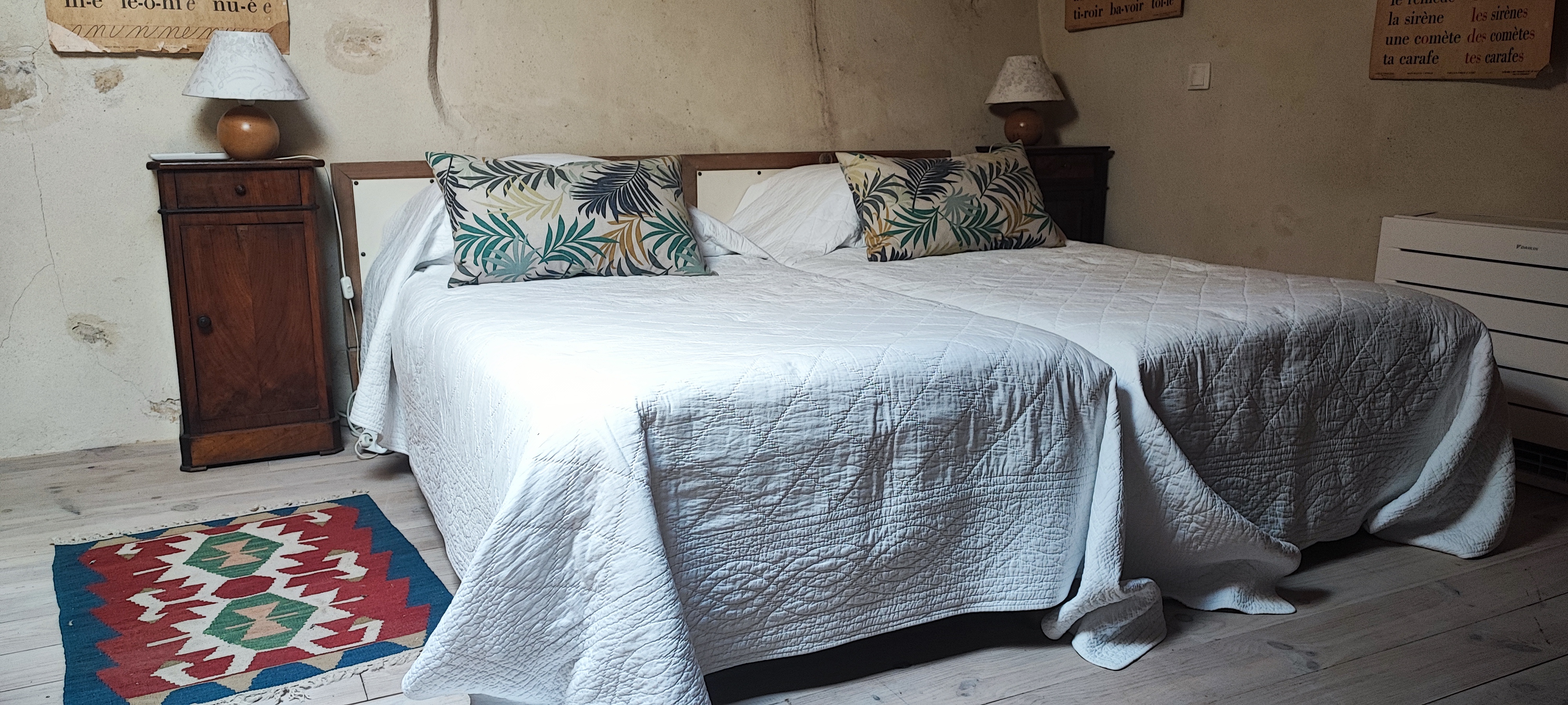 Une belle chambre de 16m2 avec lit King size, une autre chambre avec deux lits jumeaux, en mezzanine (18m2 en soupente).