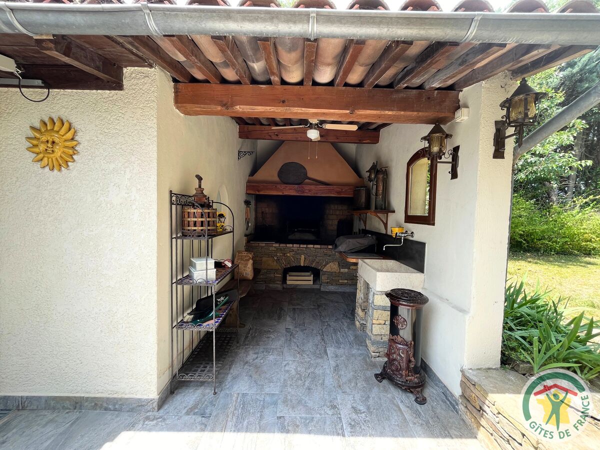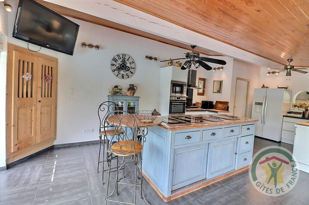 A l’extérieur, grand pool-house fermé, pouvant s’ouvrir en partie grâce à une pergola bioclimatique, avec grande cuisine tout équipée, espace repas aménagée avec une très grande table, 1 wc indépendant avec lave-linge.