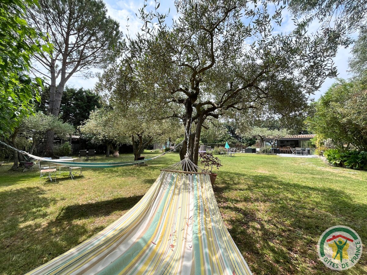 Profitez de la grande piscine clôturée, des hamacs, des petites tables de jardin à l’ombre des oliviers, du terrain de pétanque, de la table de ping-pong et de la grande table pour les repas de groupe dans le pool house entièrement fermé, qui peut s’ouvrir sur le jardin grâce à sa pergola bioclimatique.
