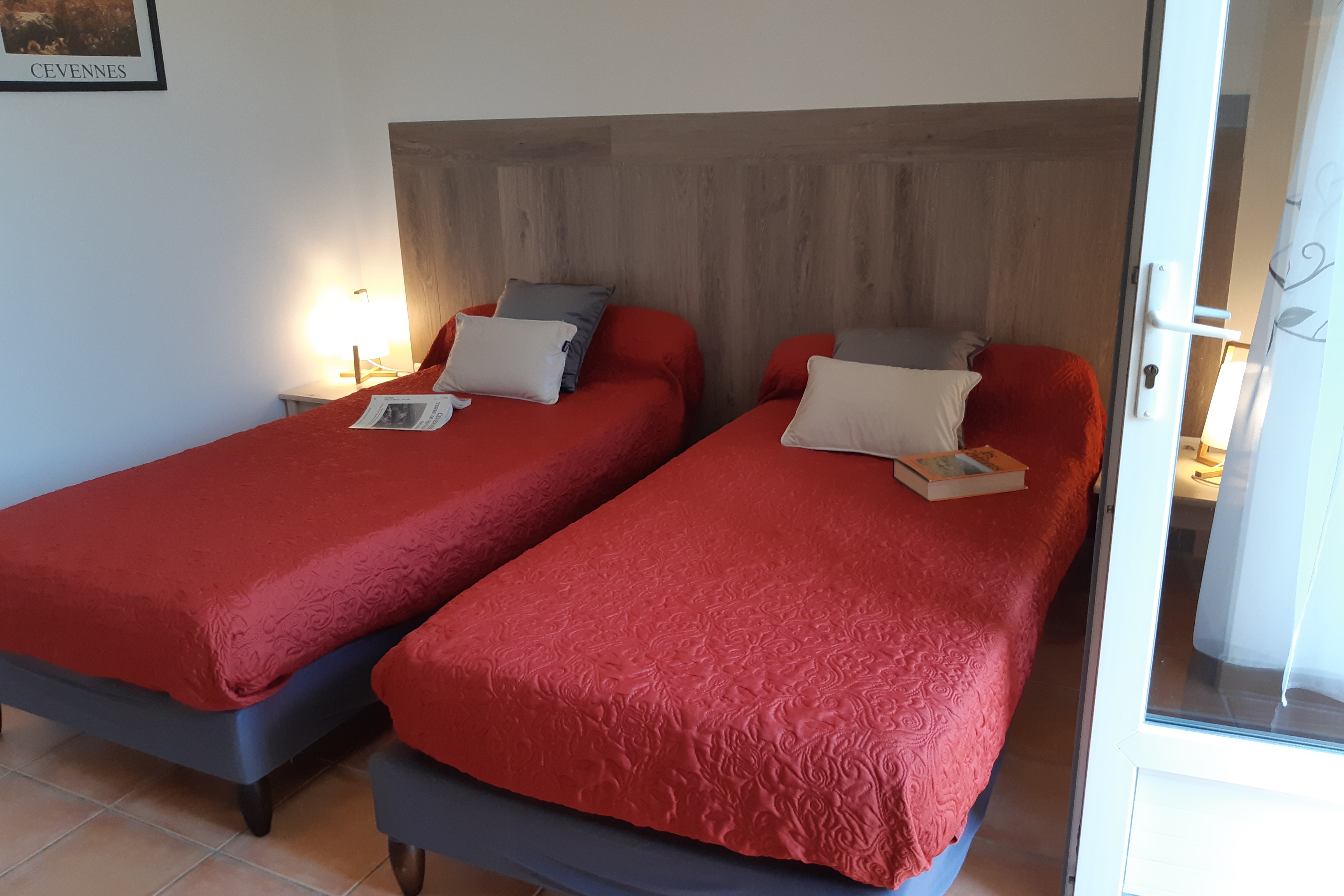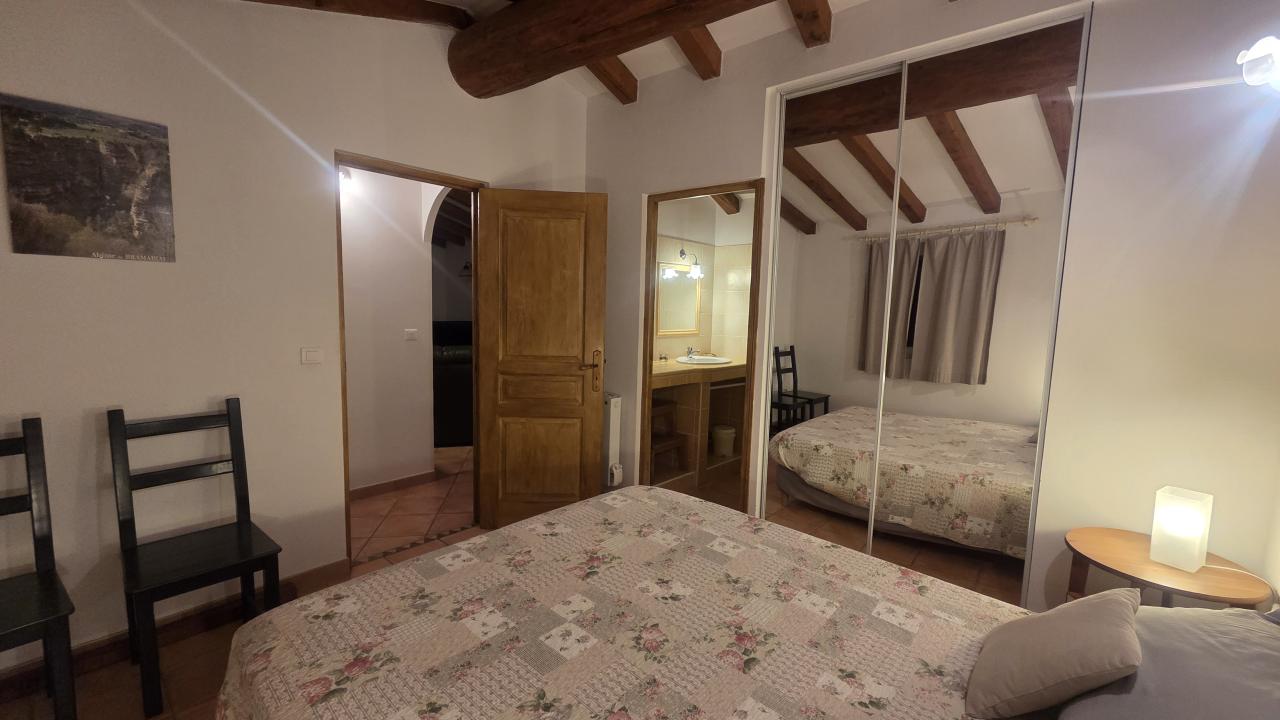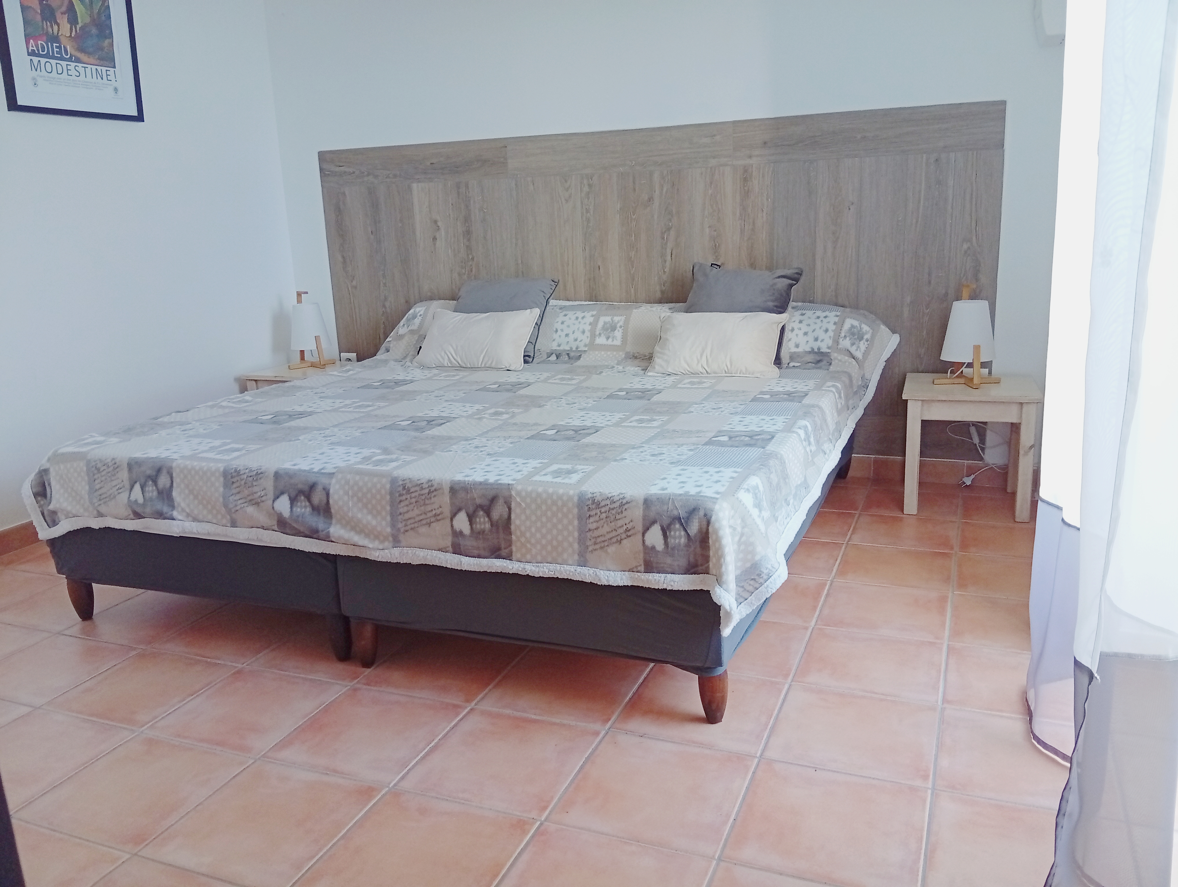 Le gîte est idéal pour vos vacances en famille ou entre amis : une chambre à l’étage avec son lit en 160 et sa salle de bain privative et deux chambres au rez de chaussée en accès direct sur le petit jardin clos avec quatre lits en 90 convertibles en deux lits en 180 plus une autre salle de bain et toilettes.