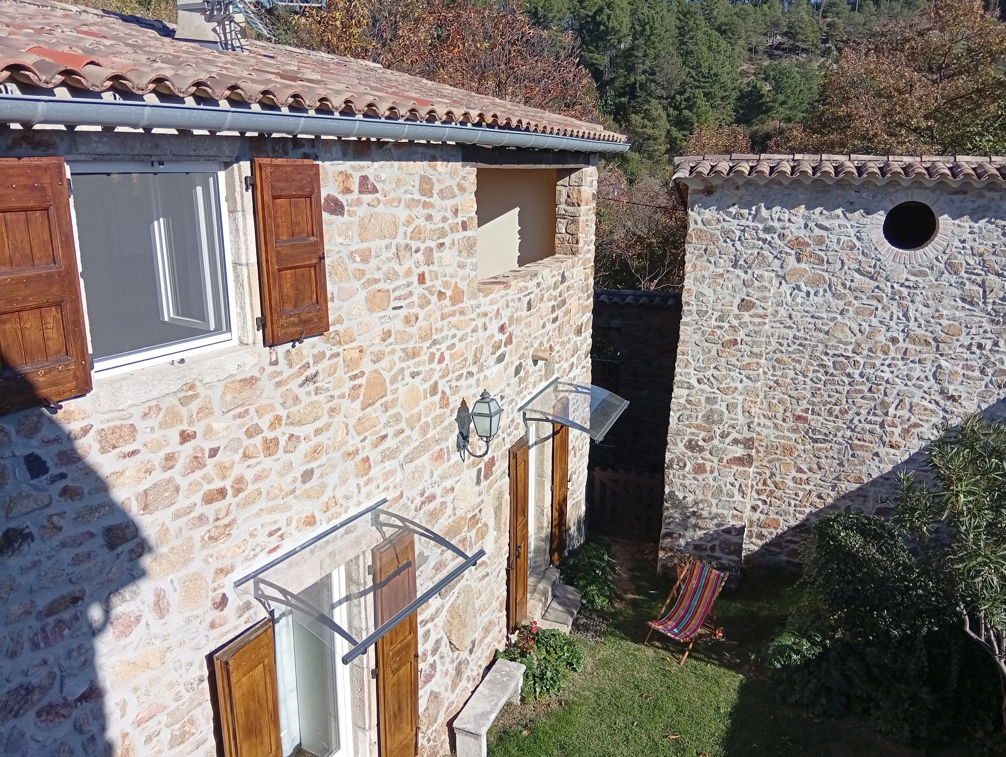 Depuis la terrasse couverte vous pourrez profiter de la vue sur la vallée de Saint Jean du Gard , dans le petit jardin vous relaxer en toute intimité , ou bien côté arrivée préparer des grillades .