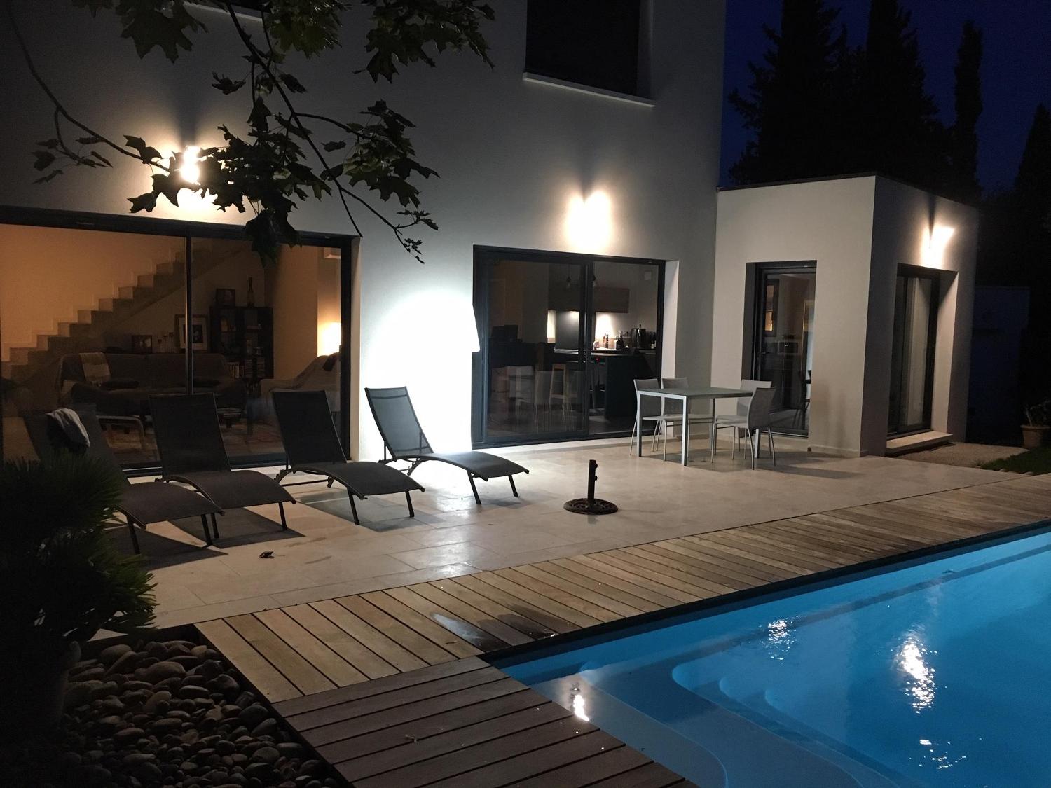 Superbe villa moderne avec piscine à louer à Villeneuve les Avignon. Très calme, fond d’impasse à 600m du centre historique.
