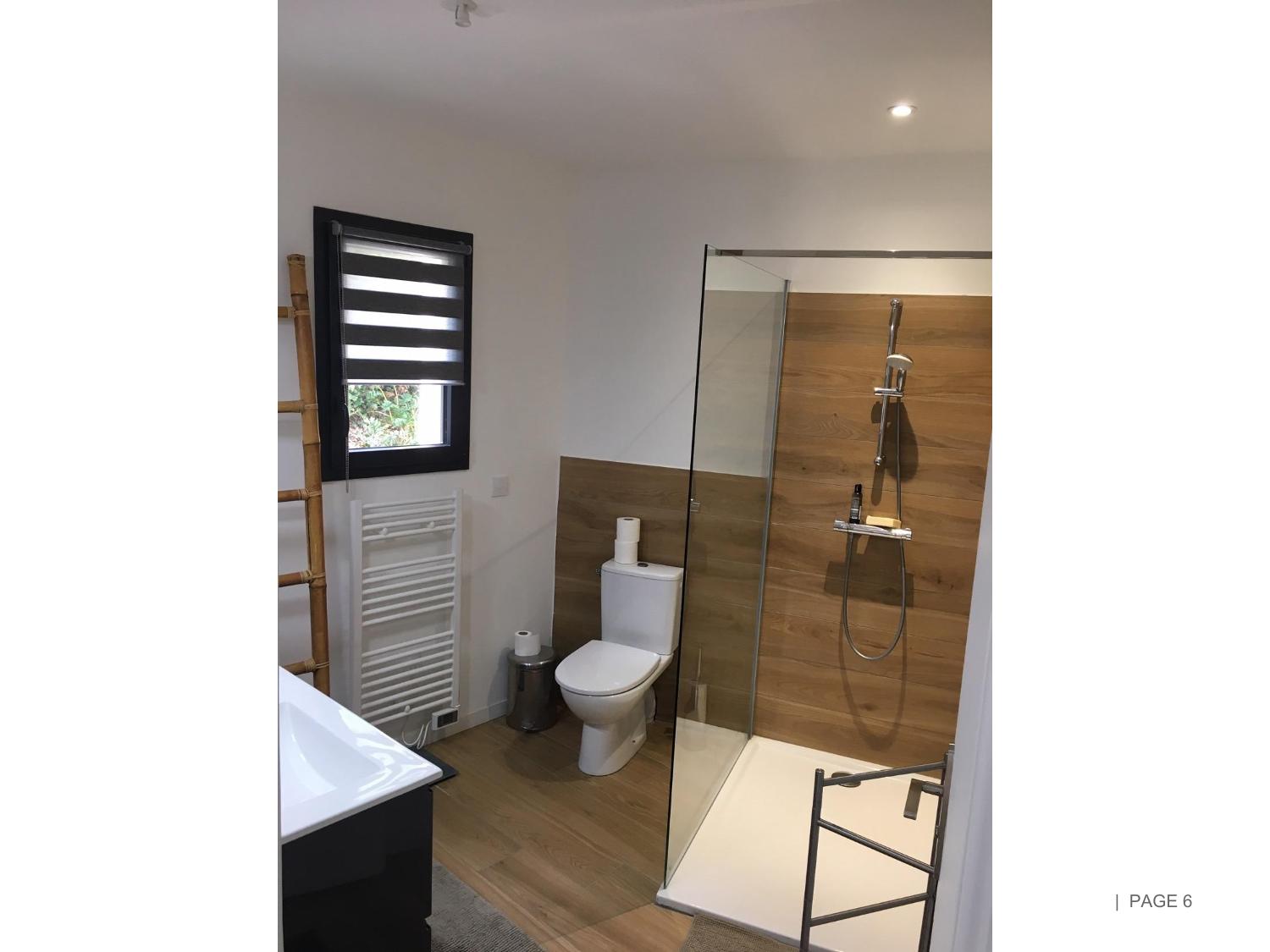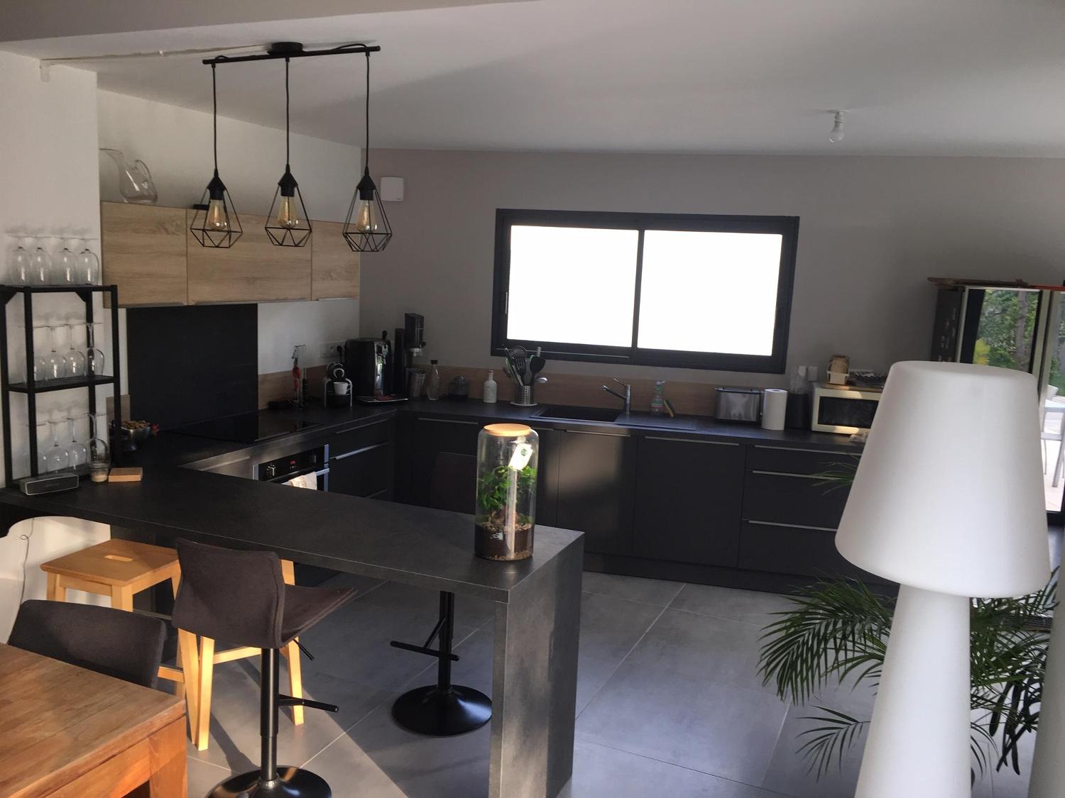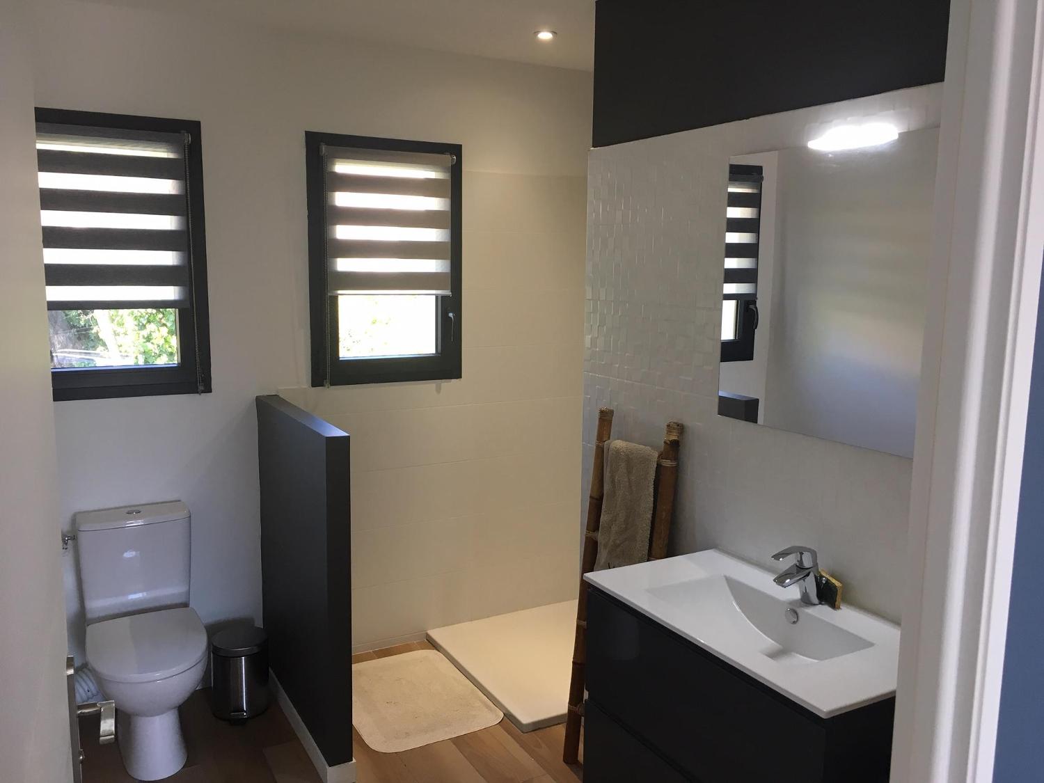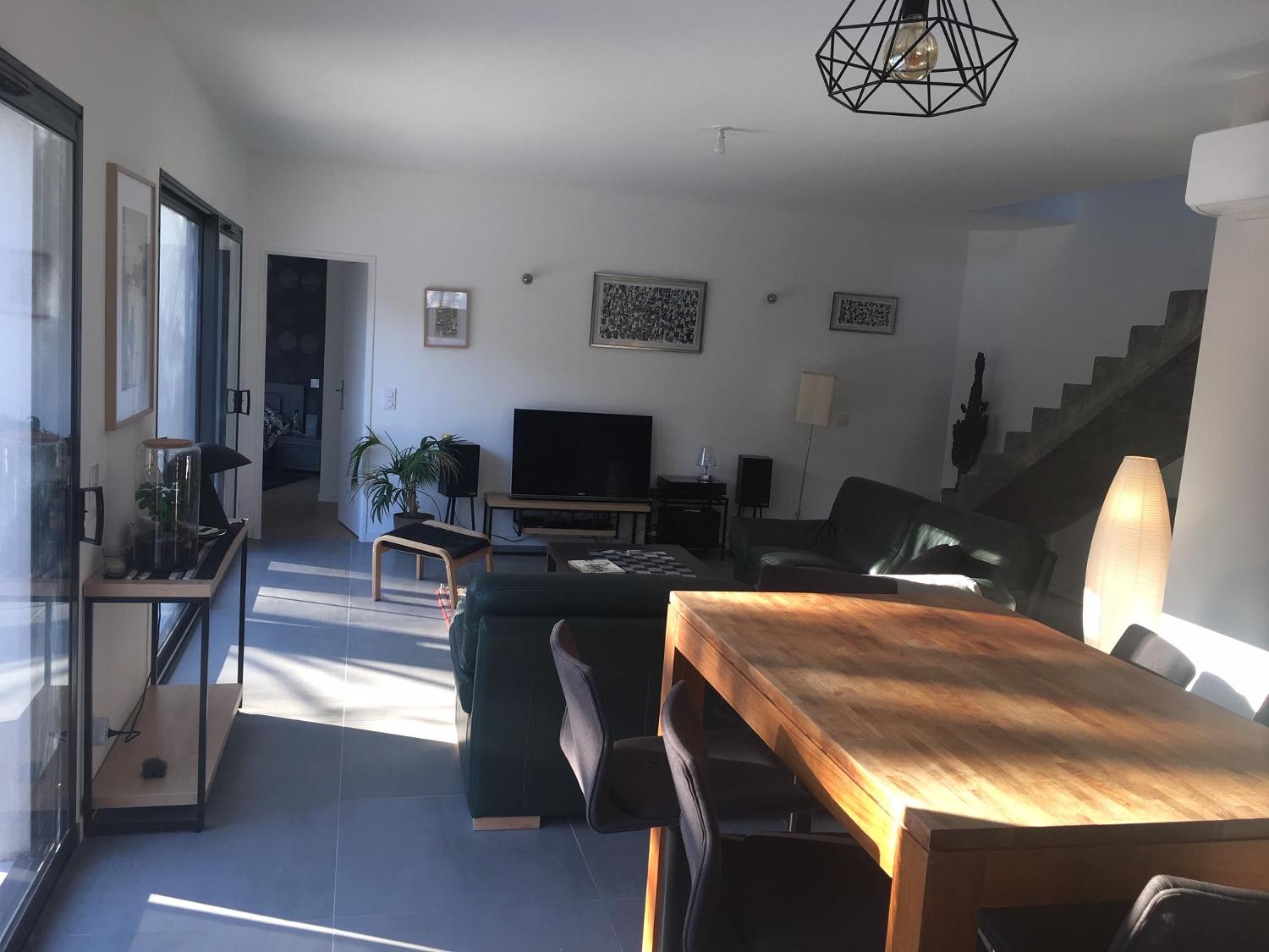 130 m2. Rez de chaussée : suite parentale (lit 160) donnant sur terrasse et piscine avec salle de bain (douche, lavabo 2 vasques et WC). Salon séjour communiquant par un bar avec une cuisine toute équipée avec frigo Américain, lave vaisselle, four, plaques induction. Cellier et WC. Etage : 2 chambres avec lit de 140, mezzanine bureau avec canapé convertible 140 et salle de bains (douche, WC et lavabo 1 vasque). Climatisation. Canal+. Internet, idéal télétravail. Terrain 800 m2, parking 2 places, grand jardin très arboré et fleuri, terrasses équipées.
