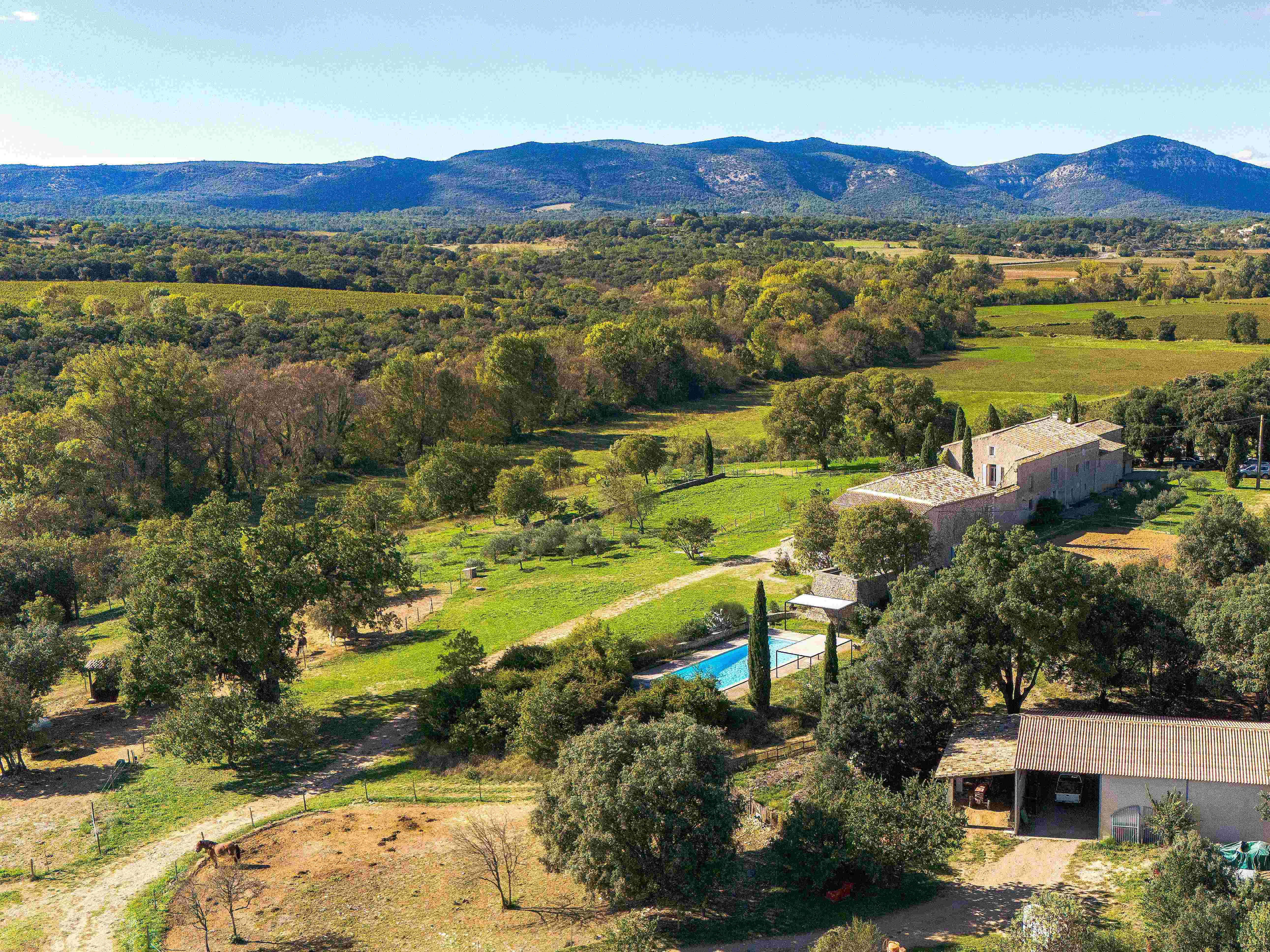 Le confort et le charme d’un grand gîte 3 étoiles dans un vieux Mas du 16ème siècle entièrement restauré. Un domaine de 3 hectares en pleine nature, mais proche de toute commodité. La beauté et le calme de la campagne, en surplomb de la rivière, face au Pic Saint-Loup et aux contreforts des Cévennes. Le bonheur simple mais ressourçant d’une vie à la ferme, au milieu des chevaux… C’est le dépaysement garanti que nous vous proposons pour un week-end ou vos vacances chez nous, avec la possibilité de louer une salle de réception et/ou une suite familiale en complément du gîte pour un accueil de groupe, un stage, une fête familiale… Domaine ouvert toute l’année. Grande piscine (16×7) au sel accessible de début mai à fin septembre.