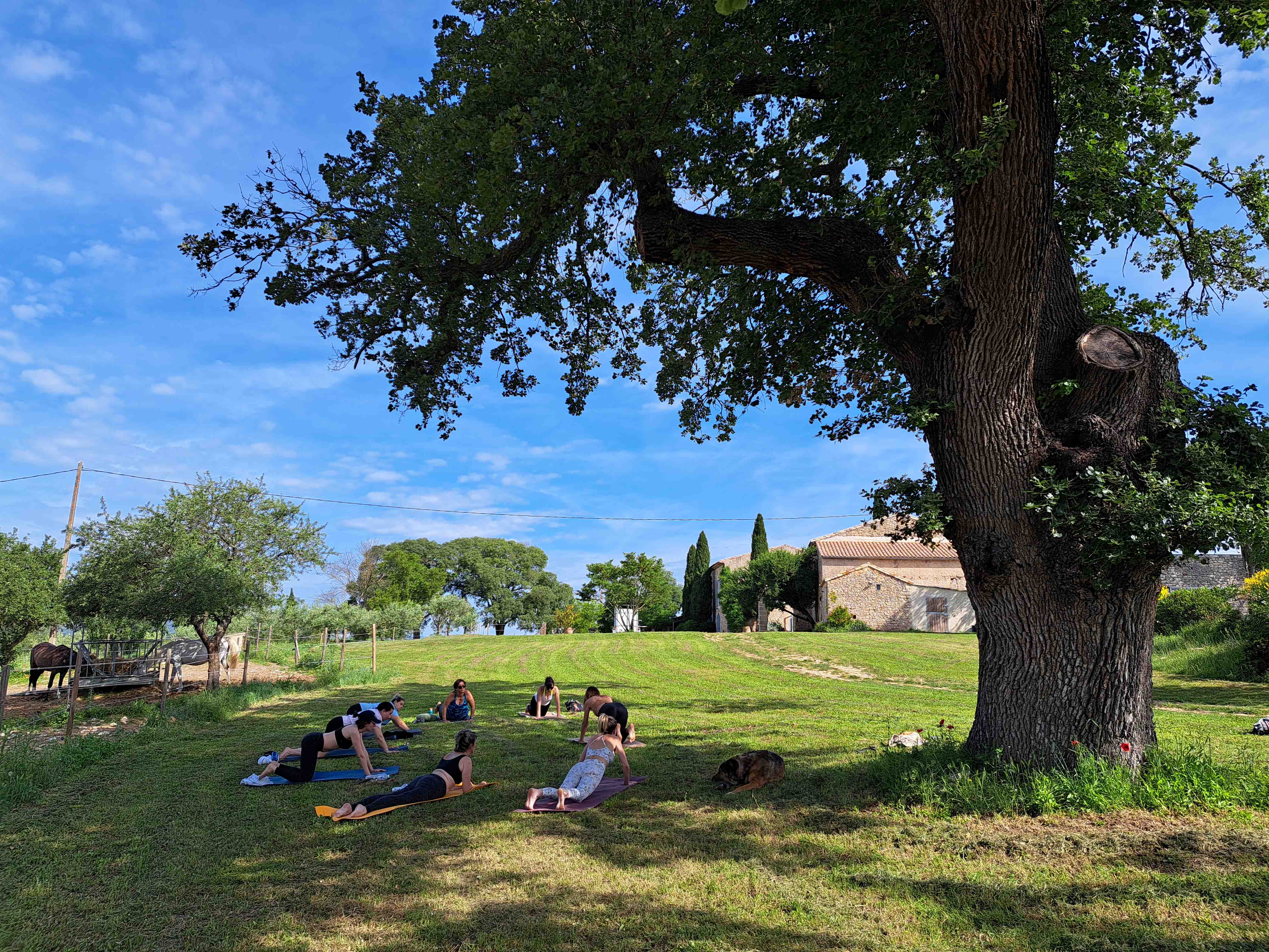 Le lieu est également idéal pour des stages de yoga, développement personnel, équicoaching ou équithérapie (10 à 12 chevaux avec expérience accompagnement).