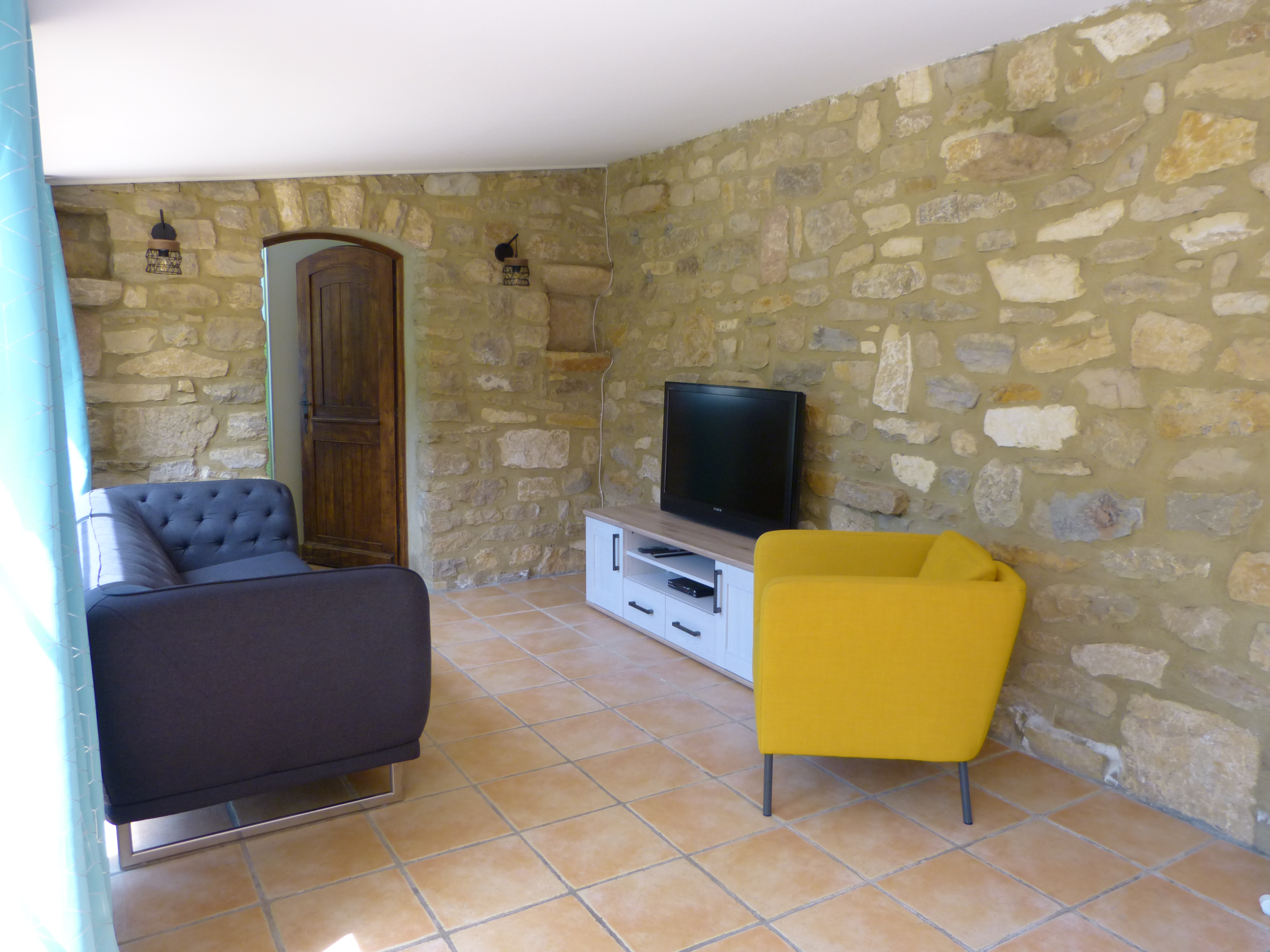 Le gîte, de plain-pied, est situé dans le jardin et peut accueillir 2 à 3 personnes. La maison dispose d’une chambre climatisée, salle de bain avec douche et toilette. La cuisine est équipée de tout le confort : lave-vaisselle, four, micro-ondes, cafetière et Senseo, lave-linge et frigo congélateur. Dehors, il y a une grande terrasse sans vis à vis avec une vue dégagée sur le jardin. L’utilisation de la piscine est commune ainsi que la salle de fitness qui se situe dans le Pool House. Le gîte est à louer sur une base hebdomadaire du samedi au samedi. Le prix comprend le linge de lit et de bain, la consommation d’eau et d’électricité.