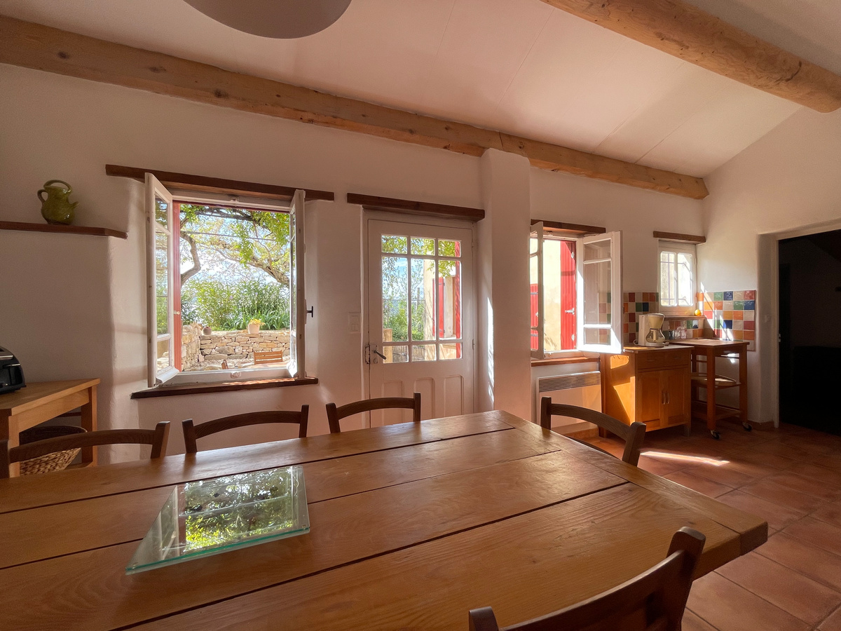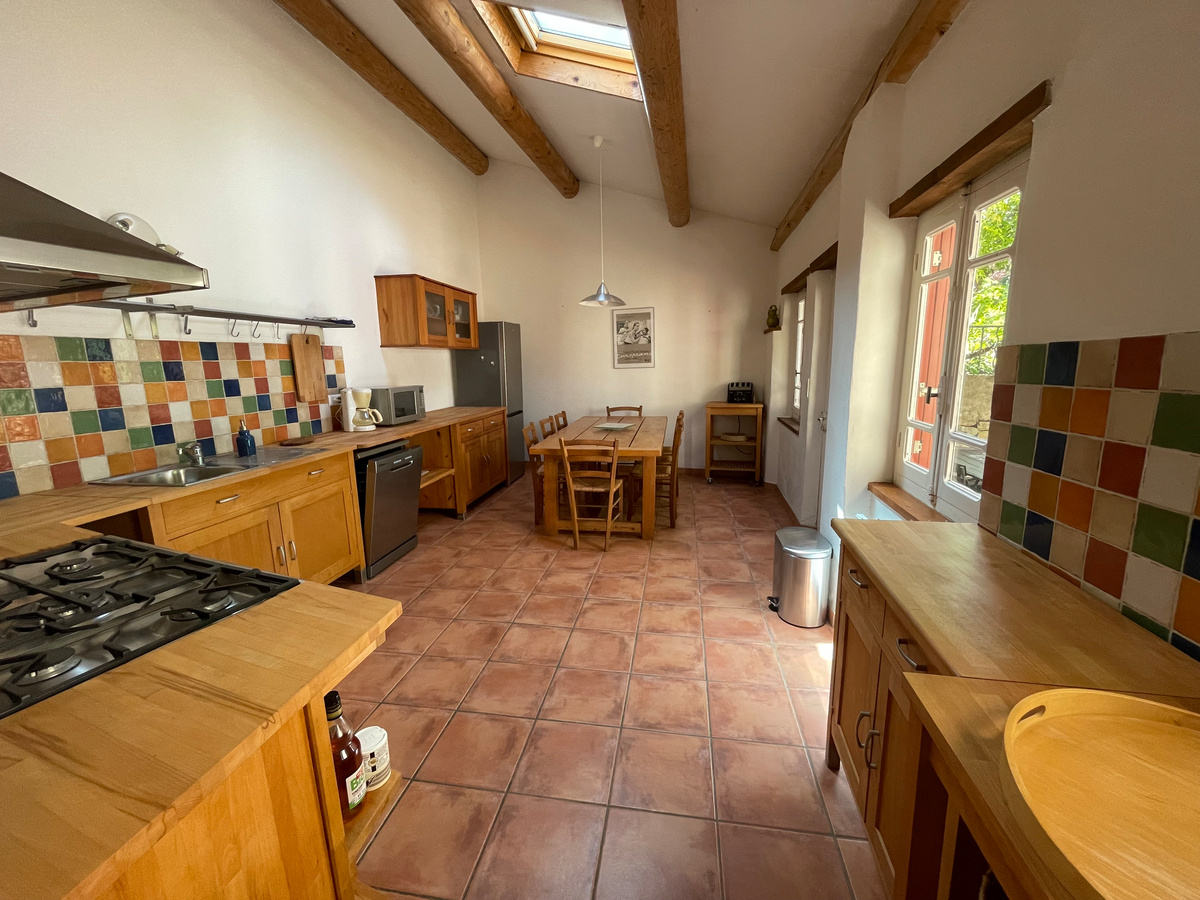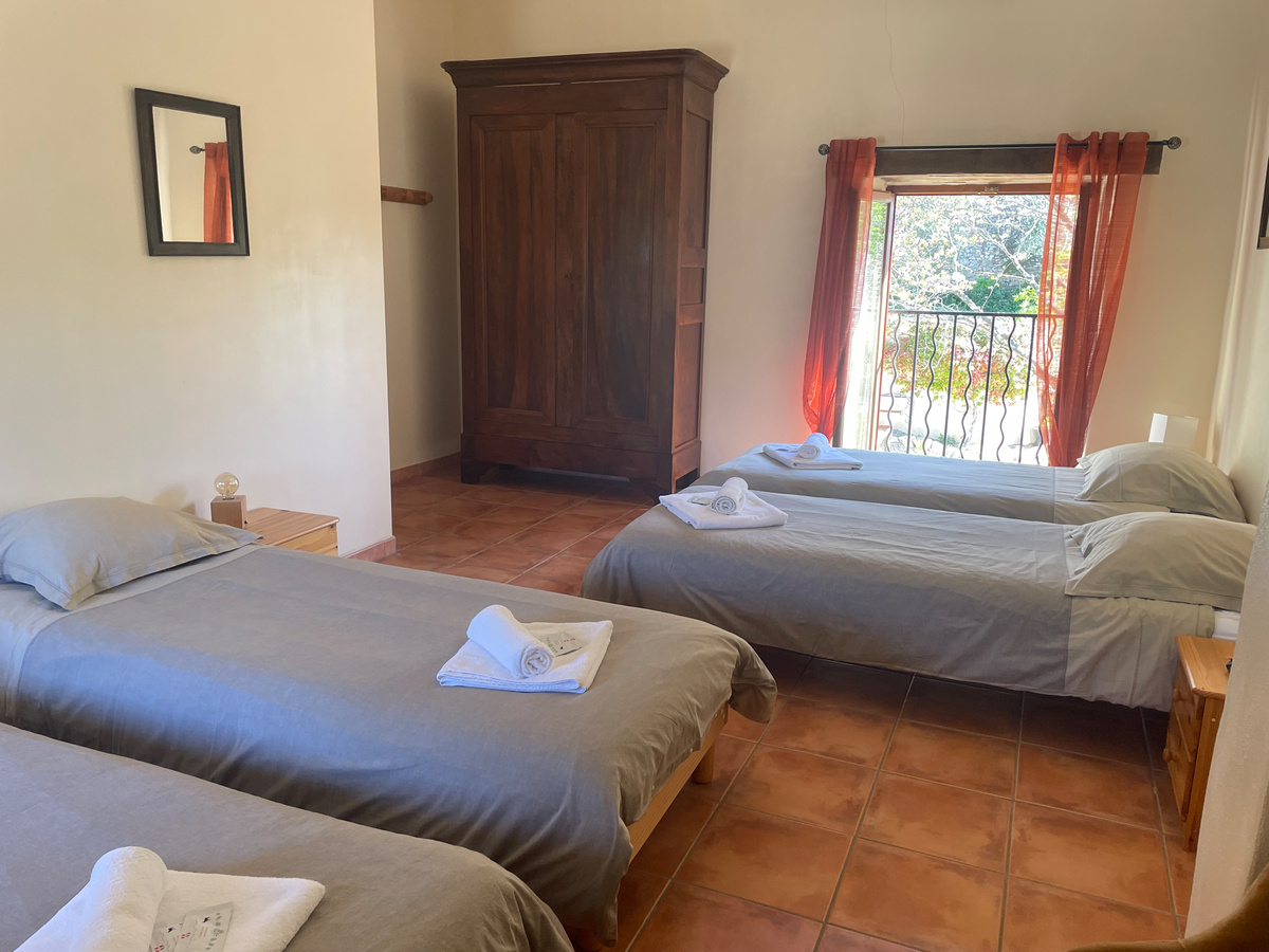 Notre gîte confortable de 125m², au style provençal conservé, dispose de tout ce dont vous avez besoin pour des vacances inoubliables pour 8 personnes : Un grand séjour, une cuisine entièrement équipée, 3 chambres (2 chambres pour 2 personnes avec lits en 160x200cm et 1 chambre pour 4 personnes avec 4 lits 80x200cm regroupables en 160x200cm), draps et serviettes fournis (compris dans le tarif), 2 salles de bain (2 douches et 1 baignoire), 3 WC, une terrasse ombragée privative avec son barbecue.