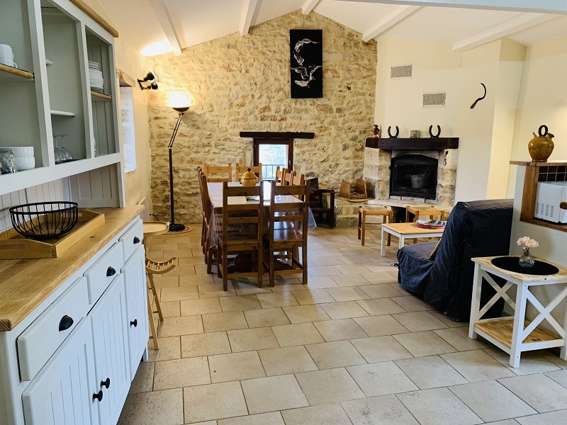 Le gîte comprend un grand séjour avec cuisine ouverte, deux chambres, une mezzanine, ainsi que deux salles d’eau avec WC. Vous profitez également d’une terrasse privée, semi-couverte, orientée plein sud et sans vis-à-vis.