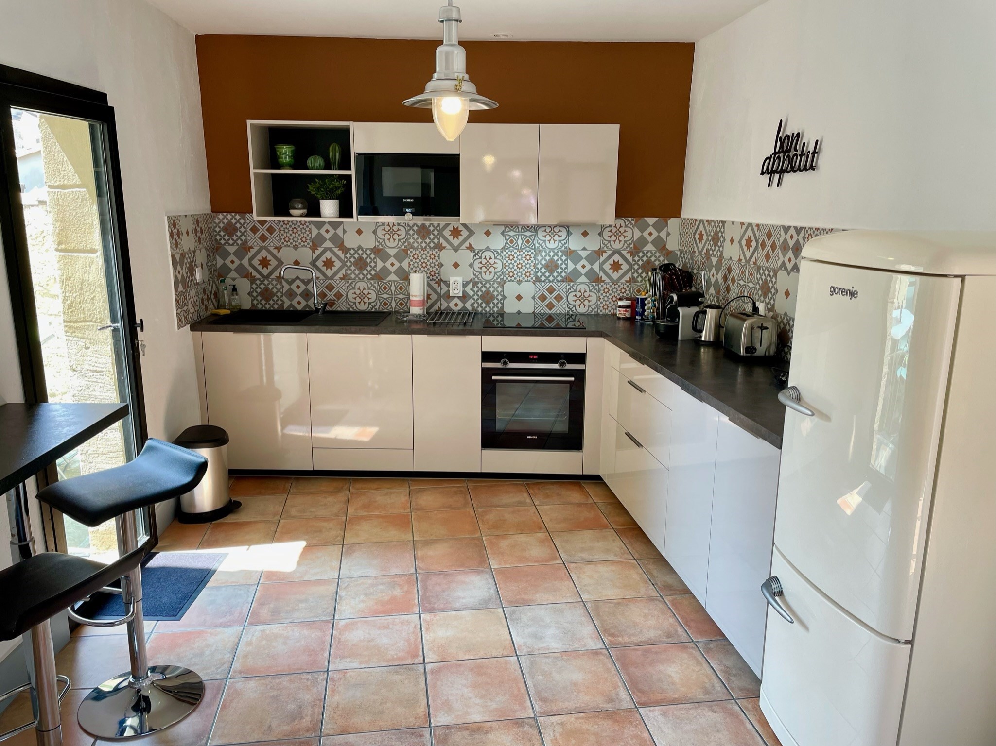 A une minute à pied de la place aux herbes, haut lieu des marchés provençaux, l’appartement « La Fenestrelle » en duplex dispose de 2 chambres, salle de bains avec baignoire et douche, WC, salle à manger, salon et cuisine entièrement équipée.
